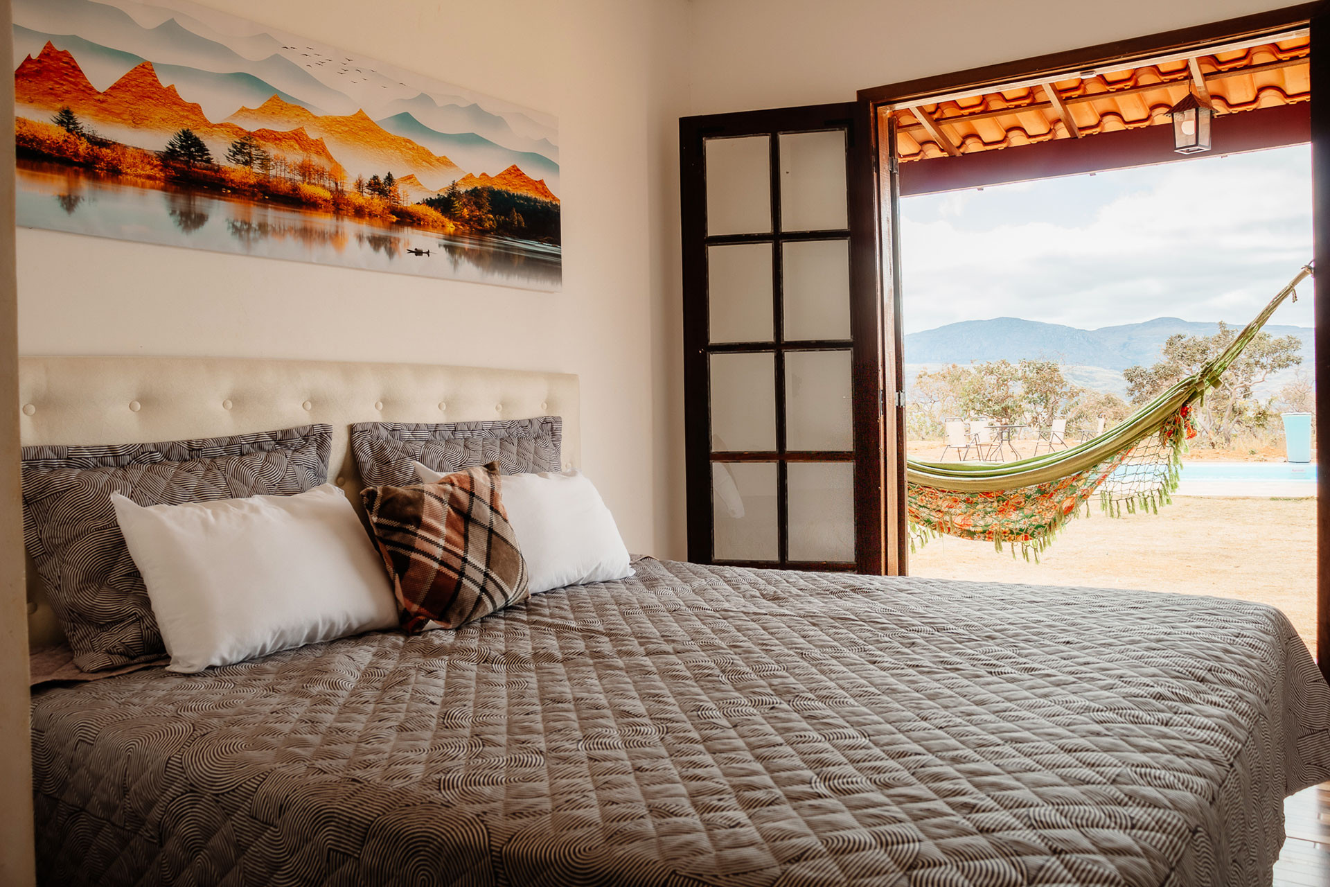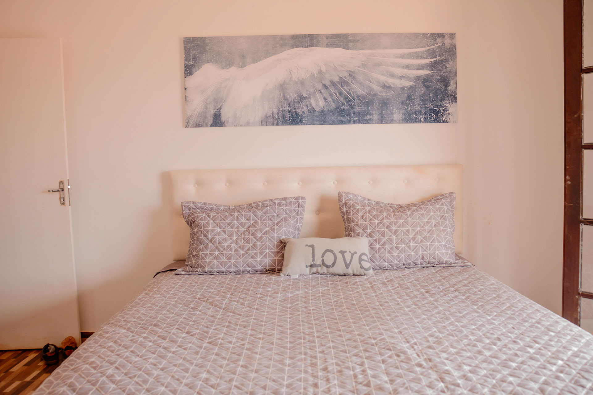 - No quarto 1 há 1 cama king size e 2 colchões extras de solteiro
