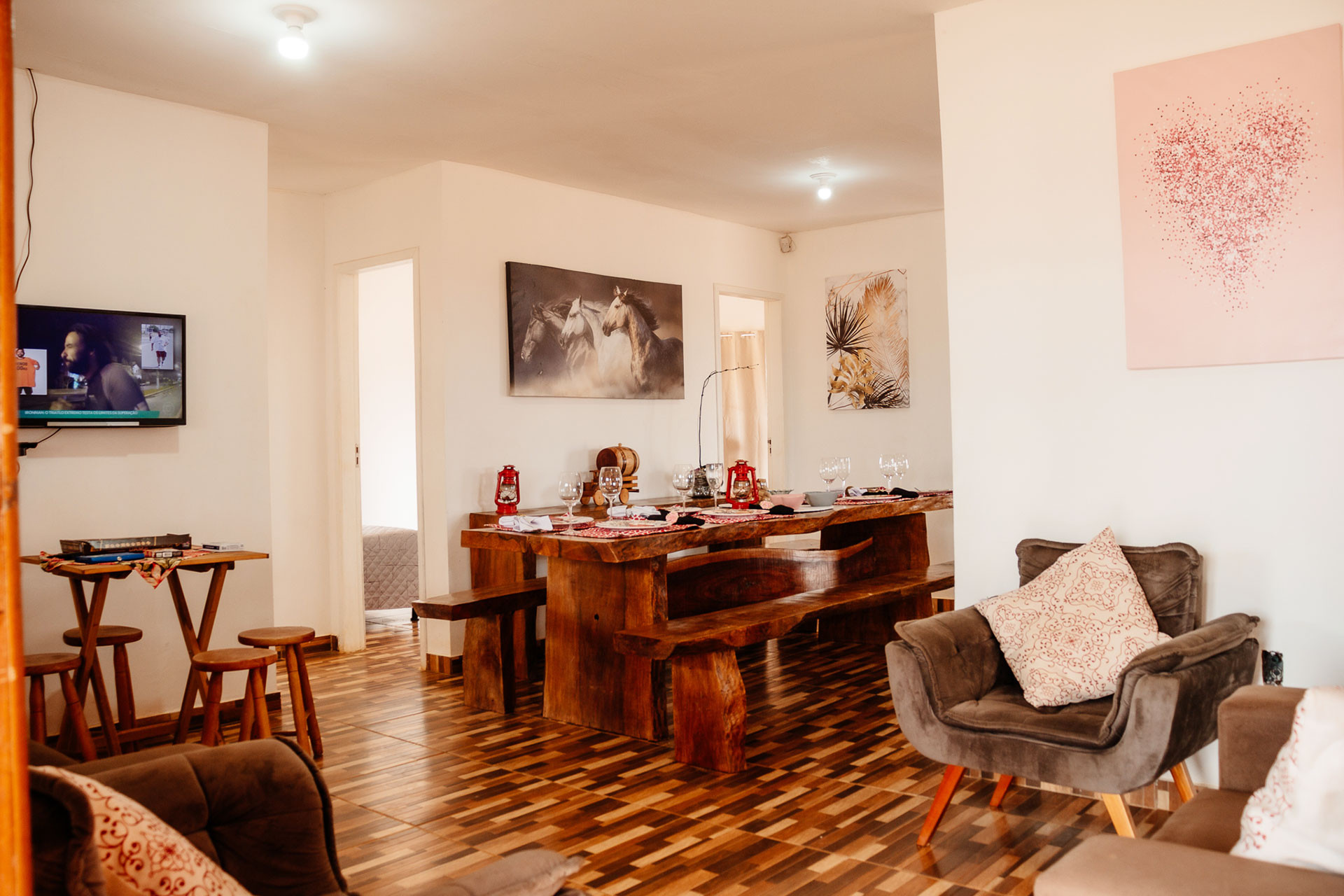 - No quarto 3 há 2 camas de casal e 2 colchões extra de solteiro