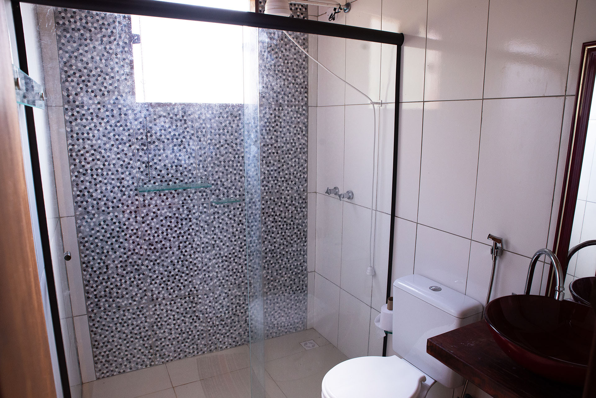 - Na suíte há 1 cama de casal, chuveiro a gás, box de vidro/acrílico, armário, edredom / cobertor e protetor de colchão