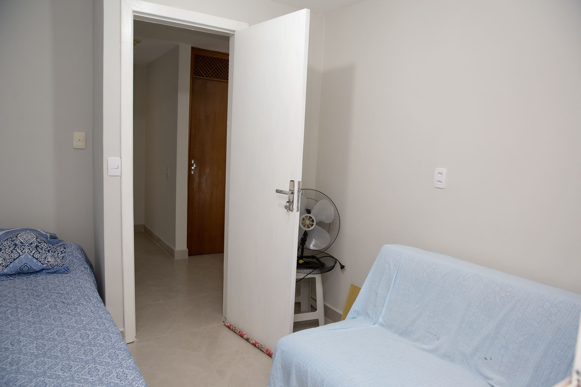 - No quarto 3 há 1 cama de casal e ventilador portátil