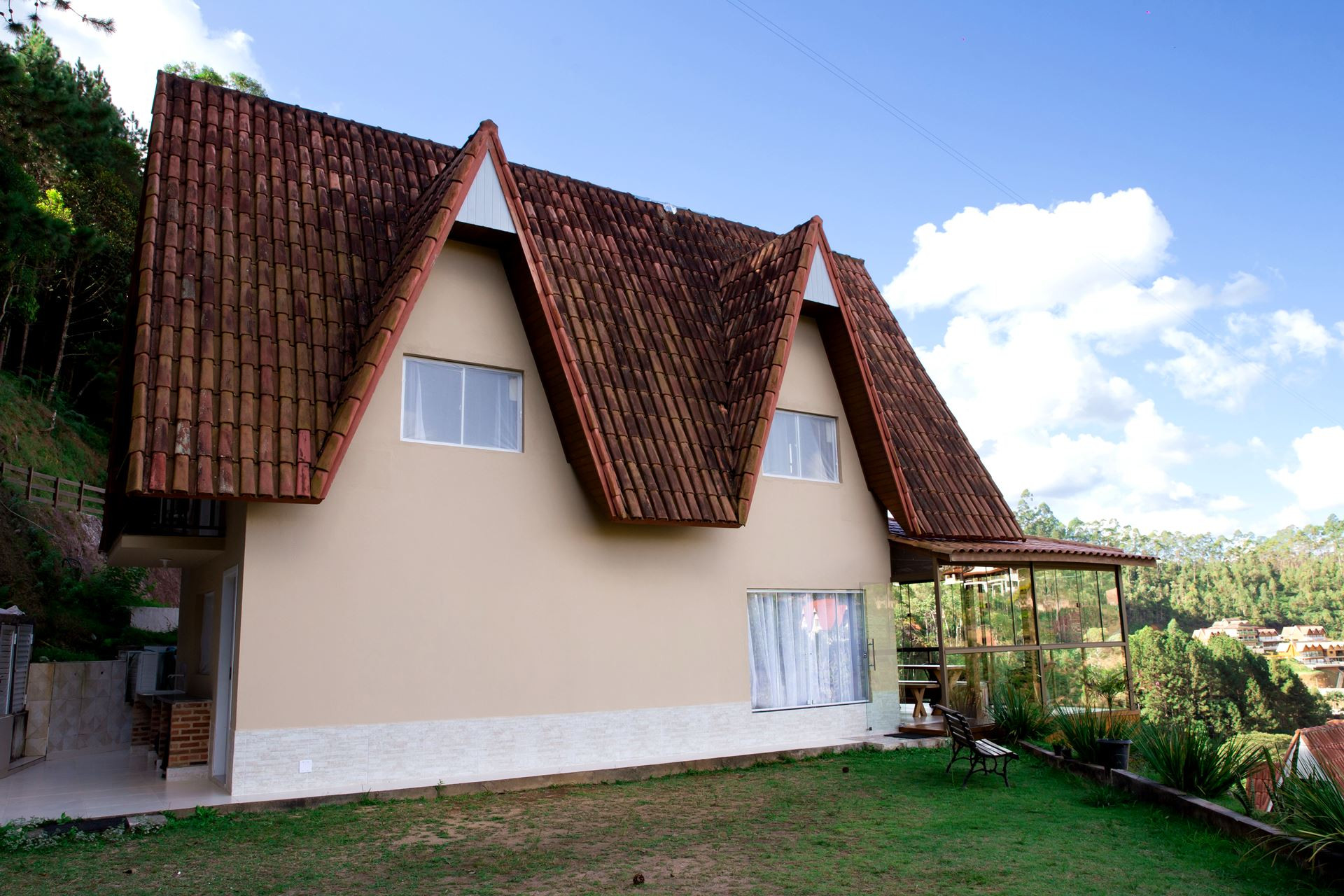 Aproveite uma excelente viagem em um incrível e aconchegante chalé, com uma vista exuberante para o parque, e uma localização perfeita, em Domingos Martins, no Espírito Santo. O imóvel recebe você com 2 suítes e 1 quarto para a sua maior comodidade. Para o seu lazer, oferecemos churrasqueira, piscina aquecida, sauna, academia, quadra esportiva, salão de jogos e um amplo parque para você se divertir com toda família. Pet Friendly. Está esperando o quê?! Reserve já sua hospedagem.