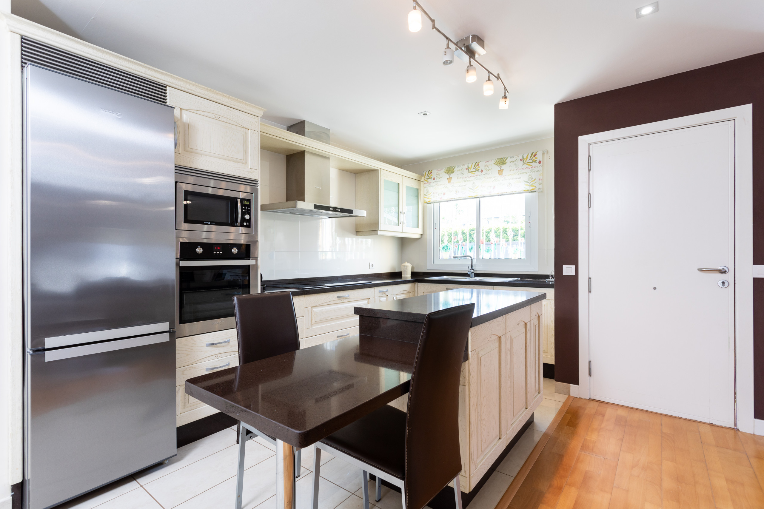 Distribuida en dos plantas y construida sobre una parcela de 400 m², la vivienda destaca por su amplitud, funcionalidad y estilo contemporáneo. En la planta baja, al entrar, se accede a un gran espacio abierto. A la izquierda se encuentra un amplio salón con sofá cómodo, TV de pantalla plana, DVD y acceso a internet. A la derecha, una cocina totalmente equipada con placa de inducción, horno, microondas, lavavajillas y pequeños electrodomésticos, ideal para preparar comidas en familia. El comedor adyacente ofrece espacio para hasta 8 comensales.
