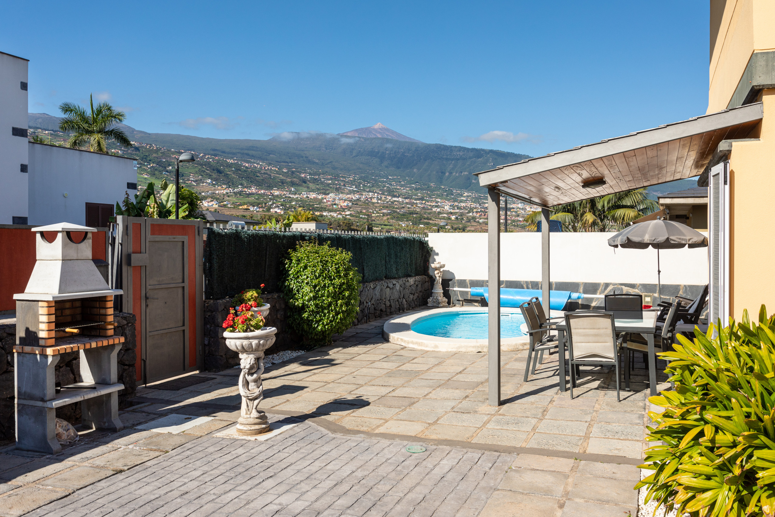 Esta luminosa y moderna villa se encuentra en una exclusiva y tranquila zona residencial de Puerto de la Cruz, perfecta para familias que buscan confort, privacidad y buenas conexiones con el resto de la isla. La propiedad ofrece una experiencia de alojamiento de alta calidad, con piscina privada climatizable (opcional con suplemento), conexión wifi gratuita, TV vía satélite y espacio para hasta 8 personas.