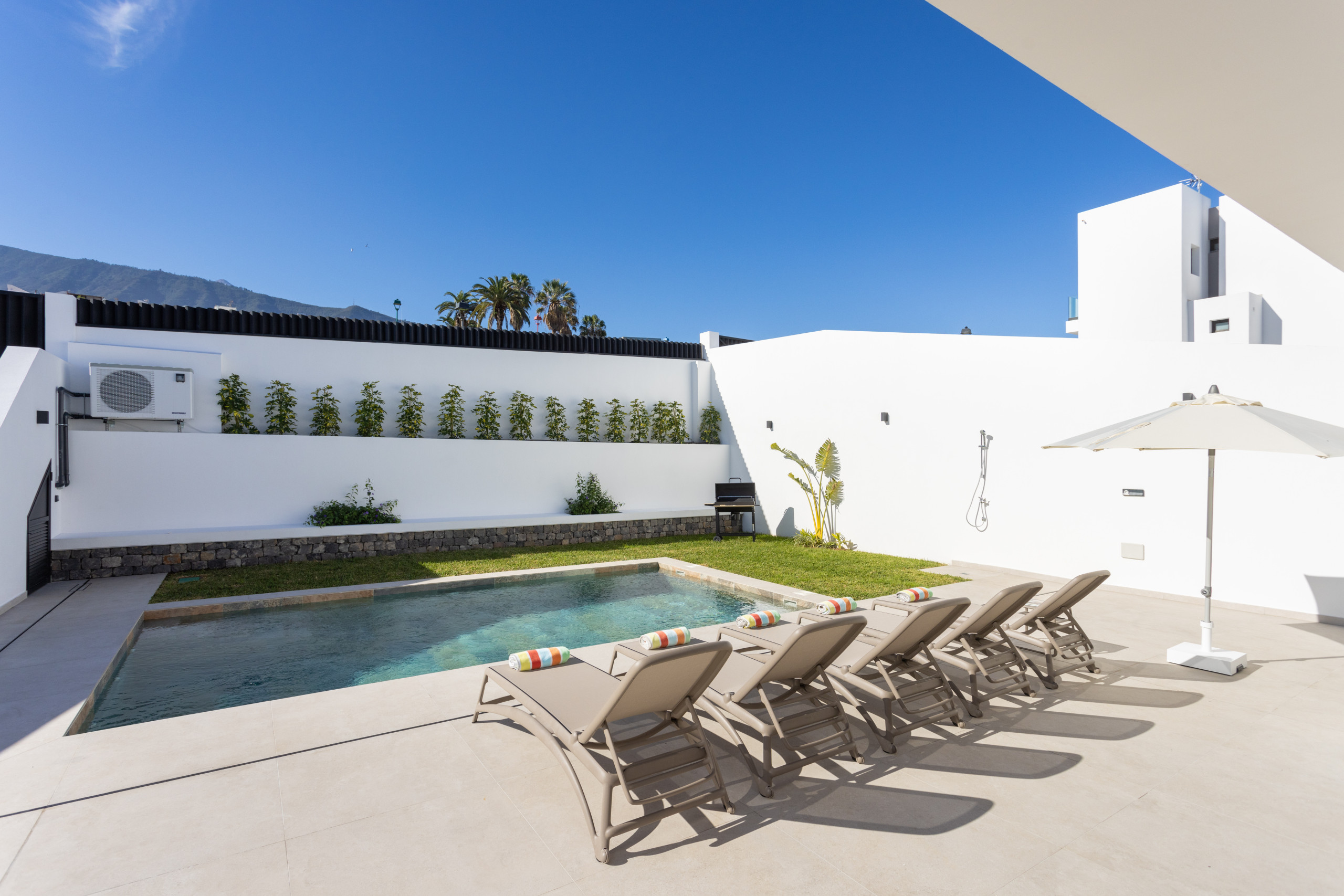 Disfruta de su magnífica terraza, el jardín privado, la piscina y un balcón superior con vistas a la montaña. Es una opción ideal tanto para familias como para grupos de amigos o personas que teletrabajan, ya que cuenta con conexión a internet de alta velocidad. Ubicada a solo cinco minutos en coche del Puerto de la Cruz y cerca de todos los servicios necesarios, esta casa es el lugar perfecto para una estancia inolvidable.