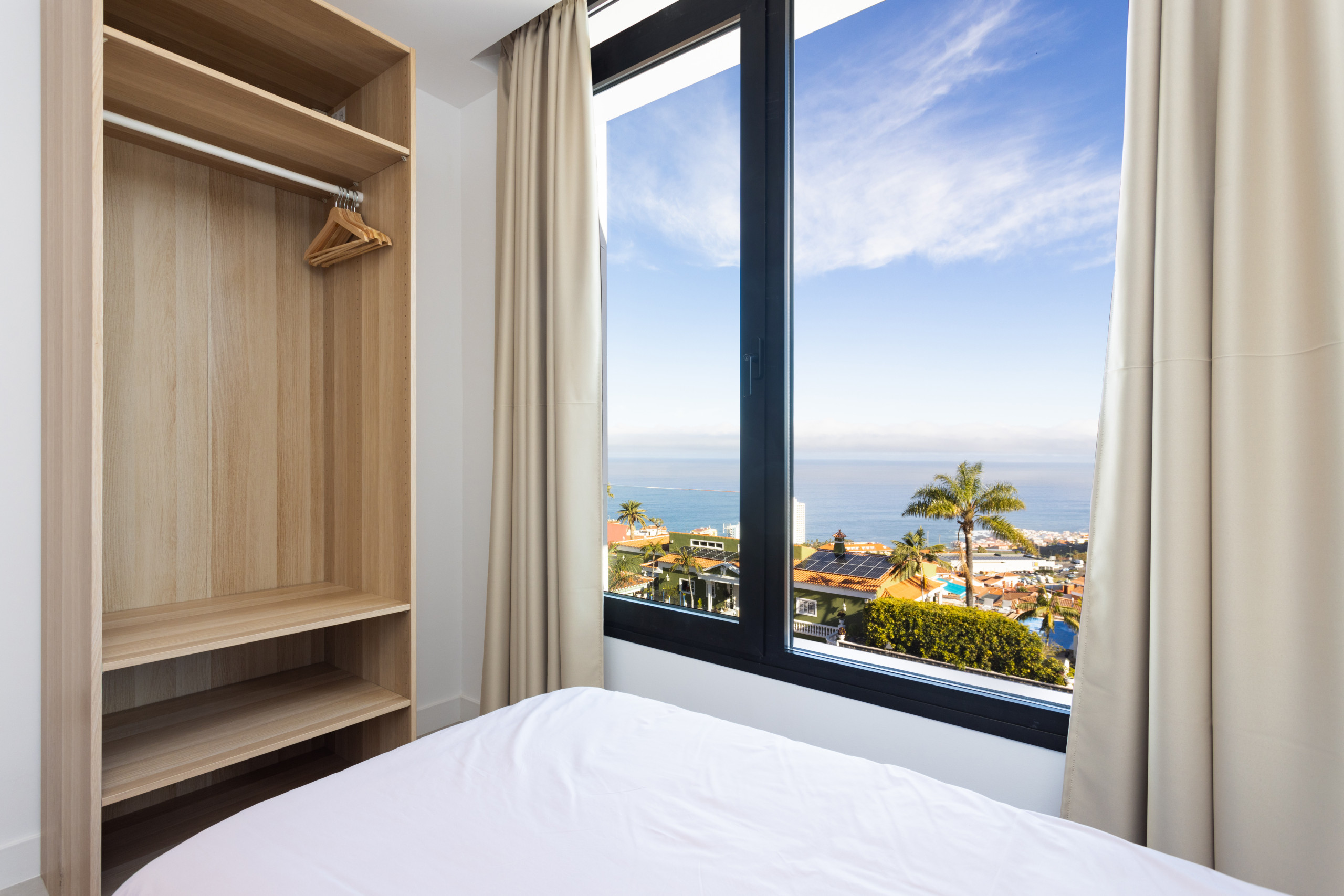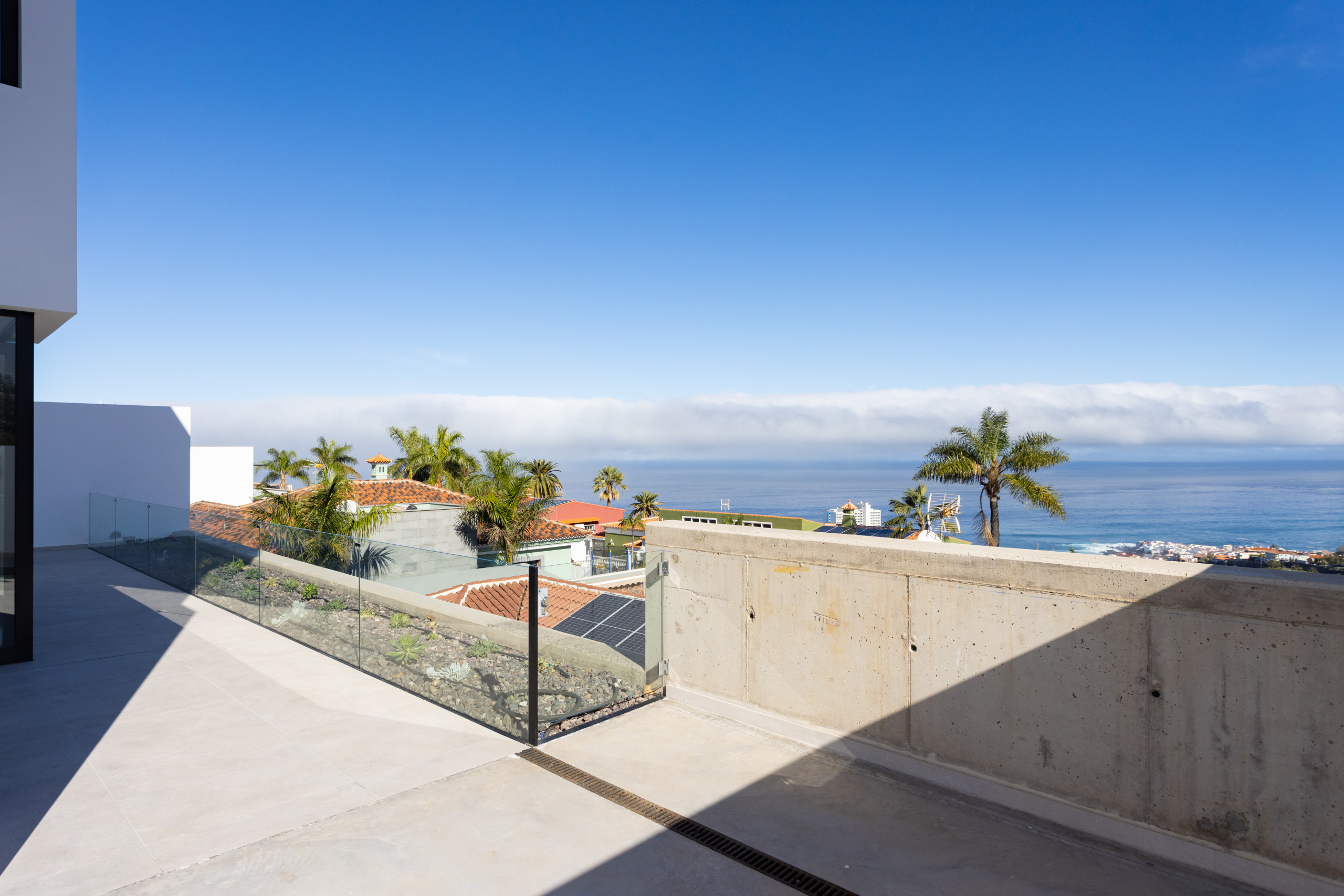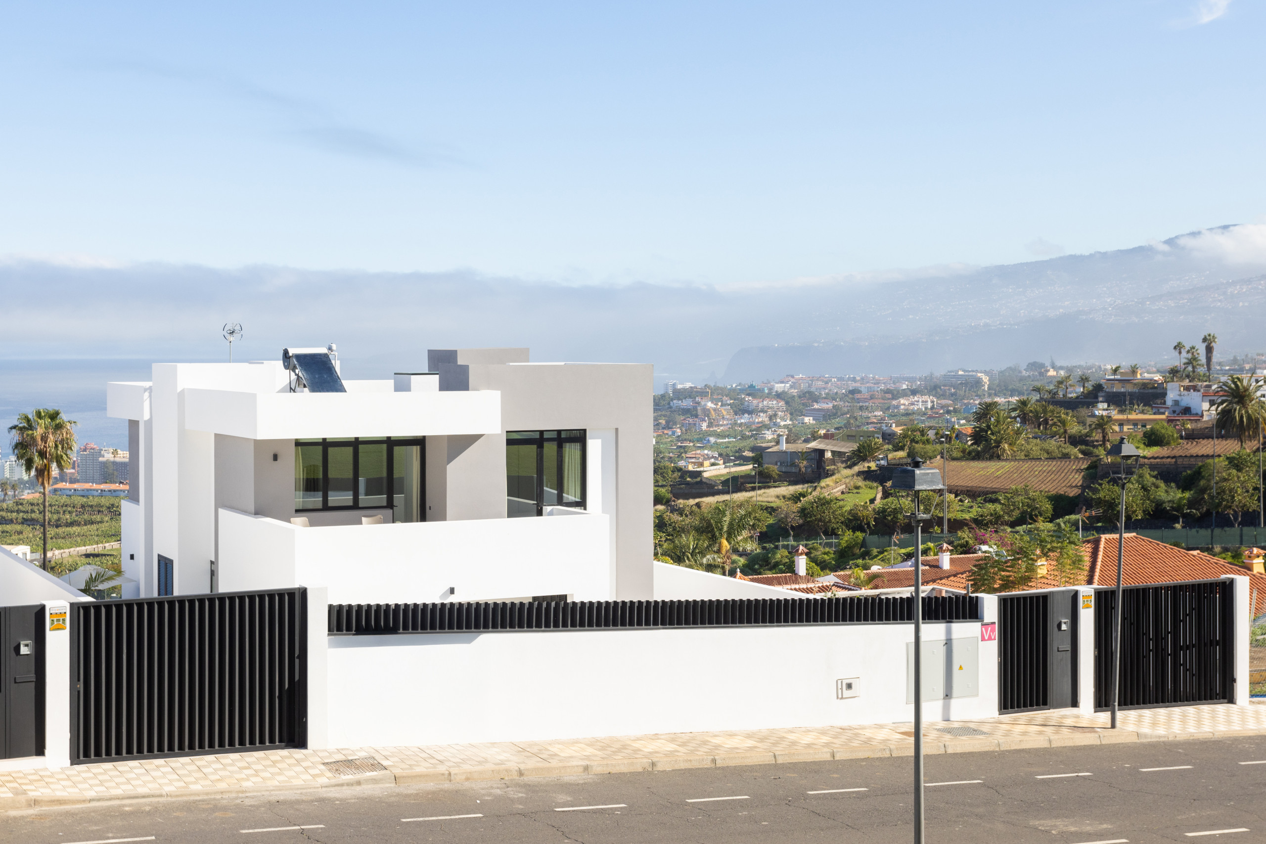 Gorvorana 3 se caracteriza por su luminosidad y diseño acogedor. En la planta superior se encuentran cinco dormitorios y cuatro baños, así como un balcón orientado al sur que ofrece vistas a la montaña y a la piscina privada. En la planta baja se dispone un gran espacio abierto con salón, comedor y cocina, todo ello enmarcado por unas vistas espectaculares al Puerto de la Cruz. También en esta planta hay un dormitorio adicional y un baño con ducha.