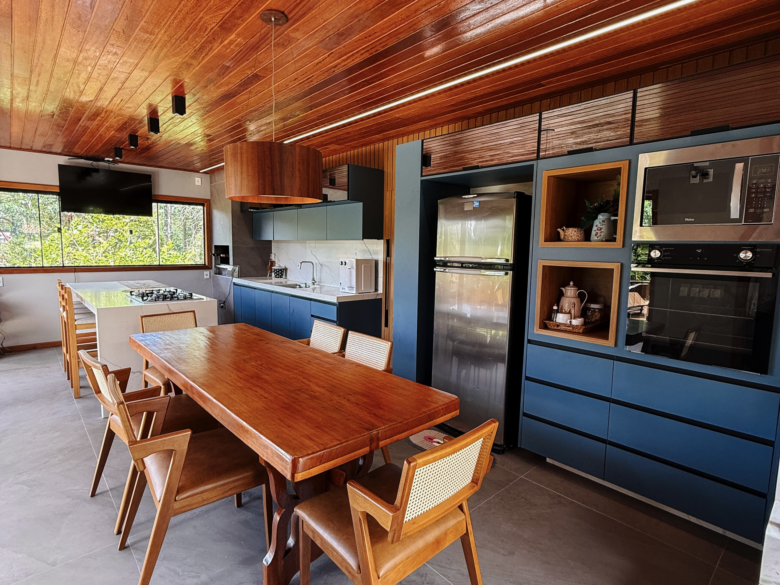 - Cozinha equipada com todos os utensílios necessários para suas refeições, incluindo fogão, geladeira, liquidificador e micro-ondas