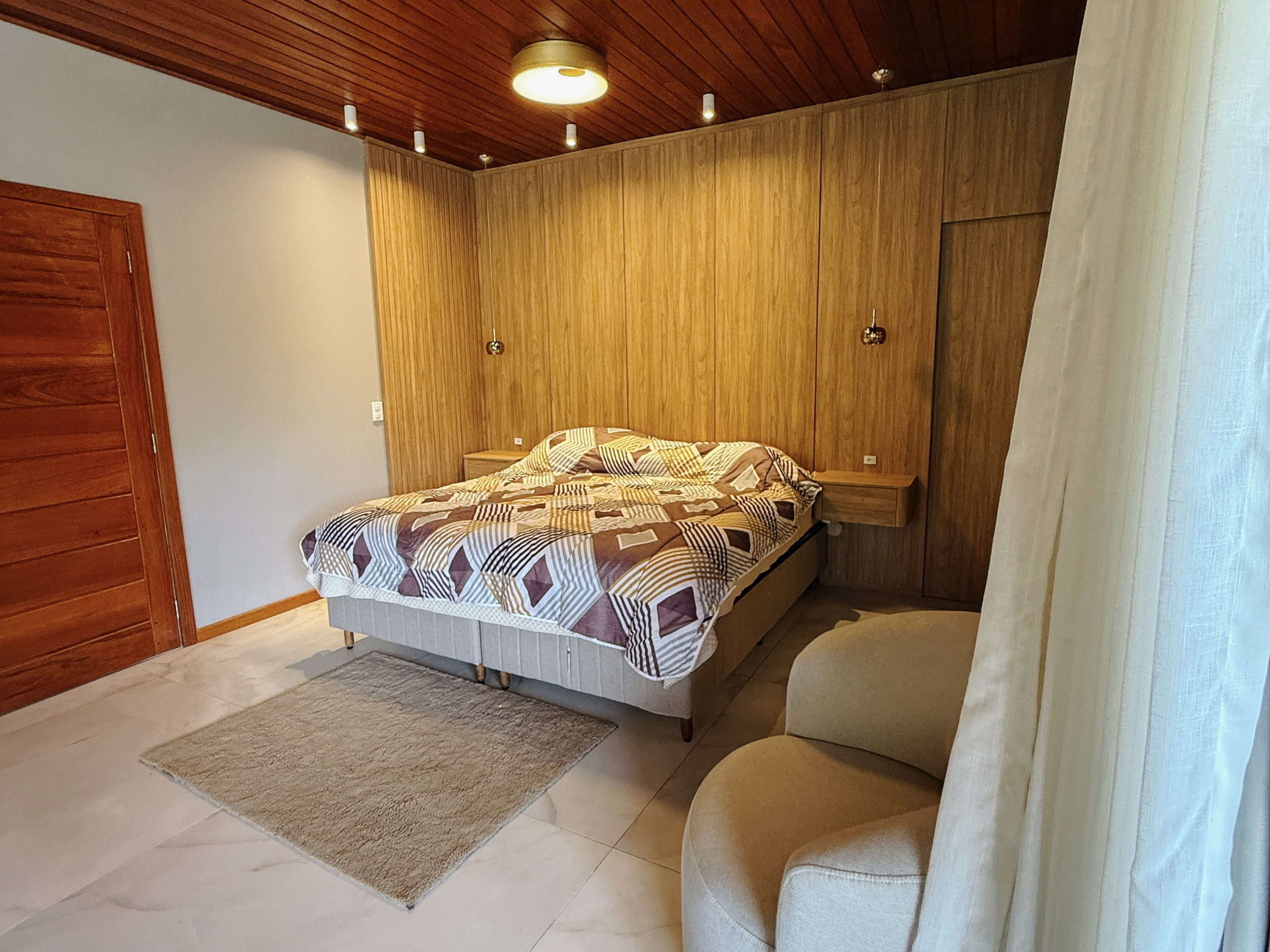 - Na suíte 1 há 1 cama king size, 1 cama de solteiro, chuveiro a gás e box de vidro/acrílico