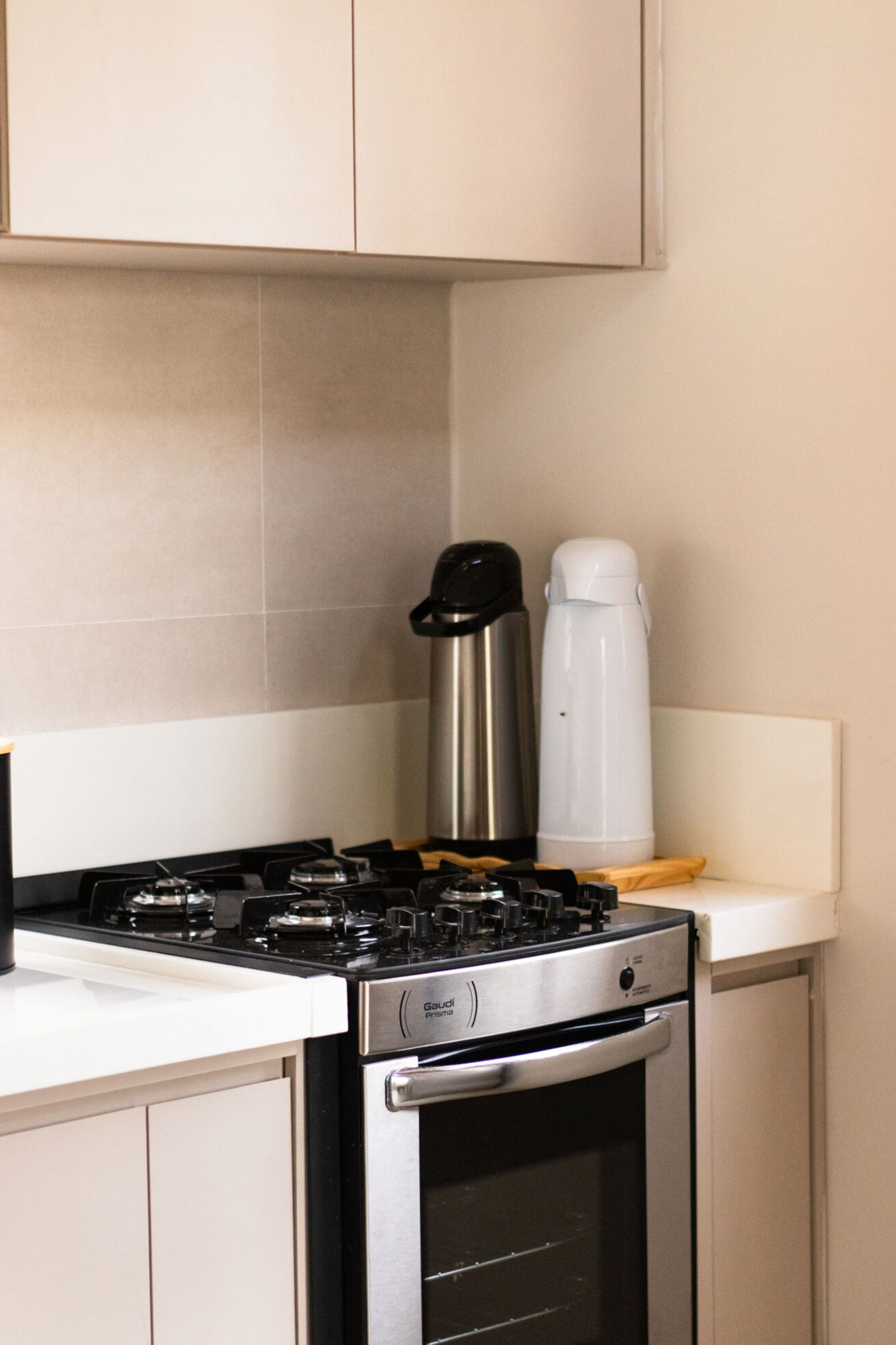 - La cocina está equipada con diversos utensilios necesarios para preparar deliciosos platos, incluyendo, cocina de gas de inducción, horno, refrigerador, licuadora, microondas, sandwichera y cervecera vertical (excepto sal, pimienta y aceite)