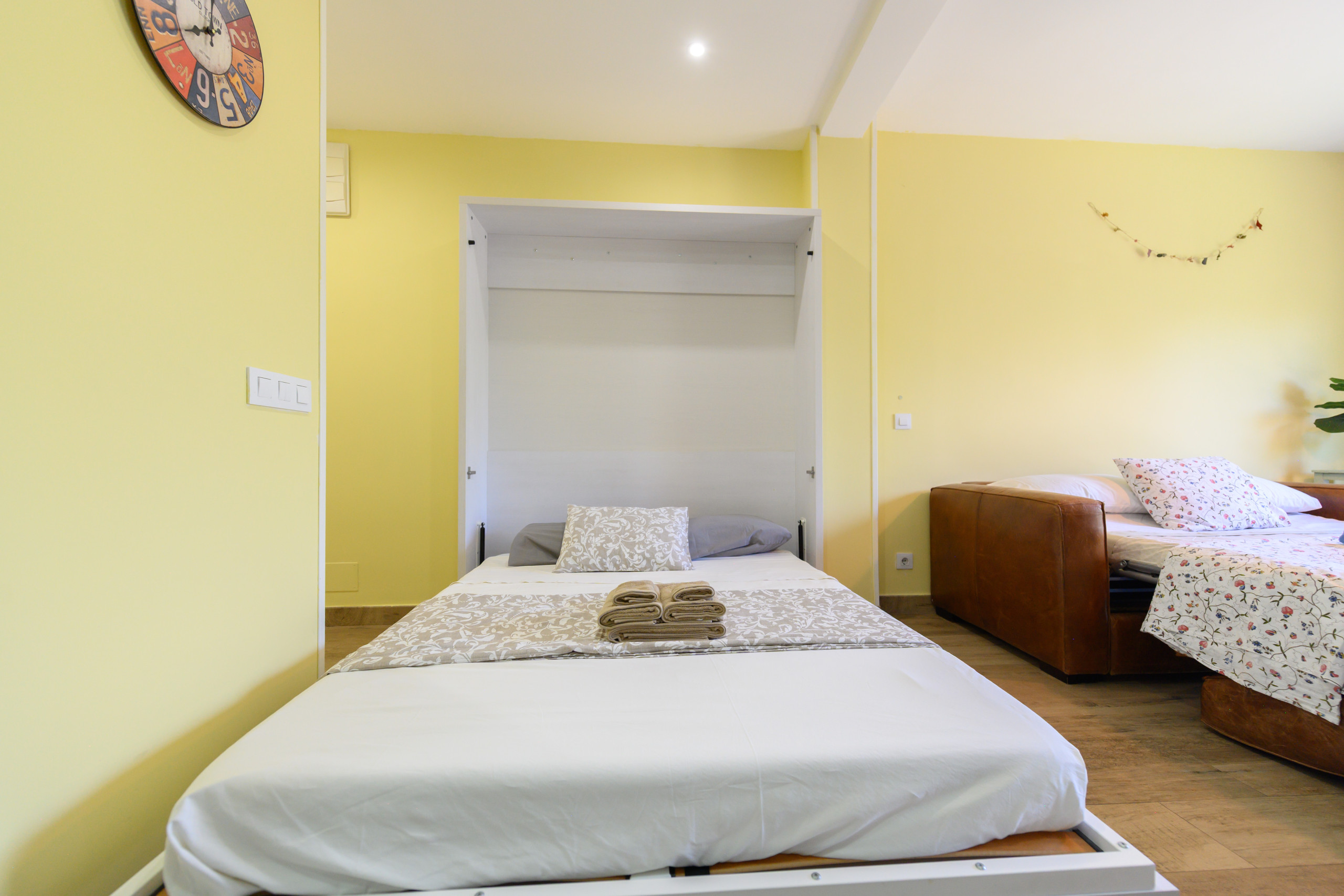Ubicado en la cuarta planta de un edificio con ascensor y portero físico, este luminoso apartamento ofrece una terraza y un balcón desde los que contemplar el atardecer en silencio, sin ruido ni tráfico. Su interior, acogedor y funcional, está completamente equipado: cama abatible, sofá cama italiano, aire acondicionado central y una cuidada decoración que invita a quedarse.