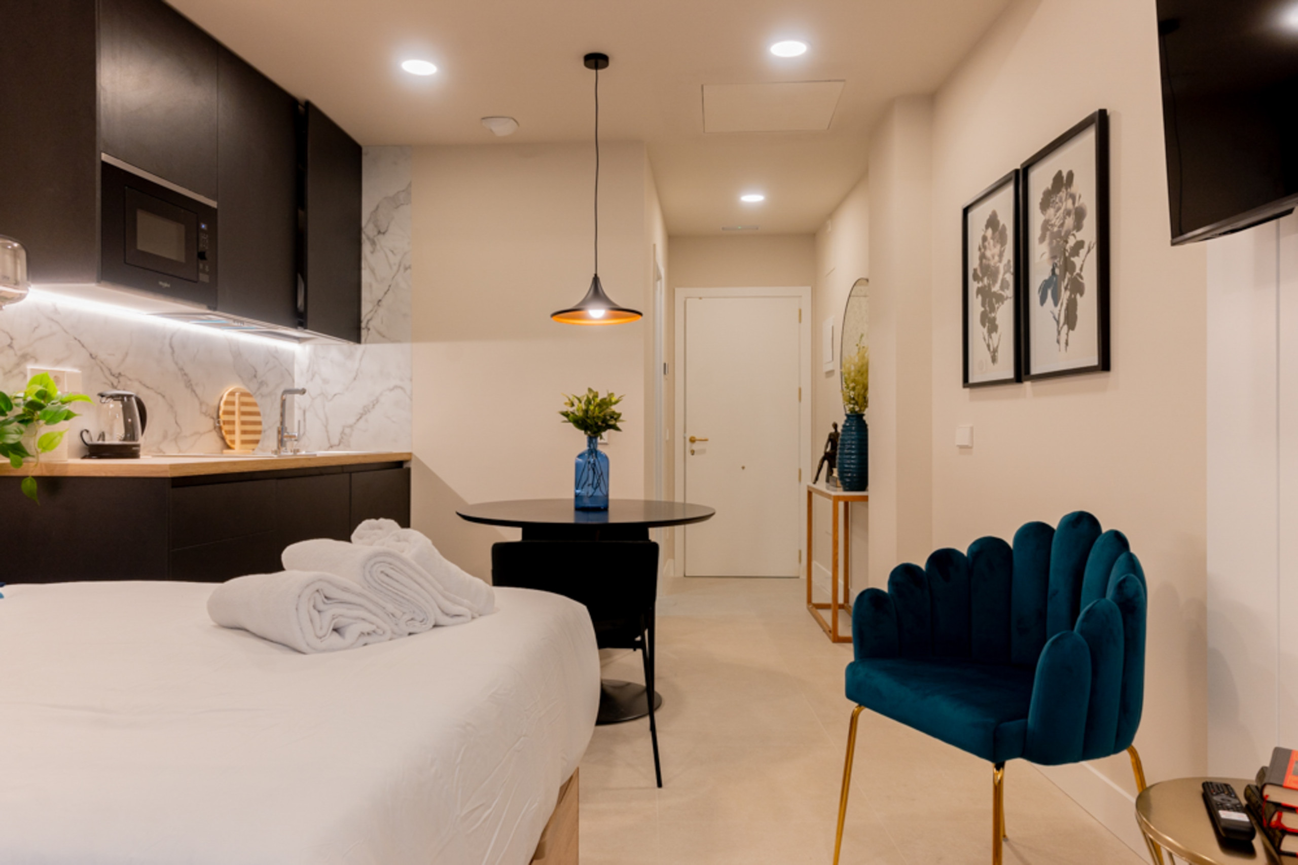 El Estudio Oriente es un espacio único diseñado por Espacio Vivo Interiorismo, que combina estilo y funcionalidad inspirado en la elegancia y la atmósfera de uno de los lugares más icónicos de Madrid: los Jardines de Oriente. Este estudio ofrece una estancia cómoda, moderna y completamente equipada, ideal para quienes buscan disfrutar de la ciudad desde un espacio cuidado al detalle.