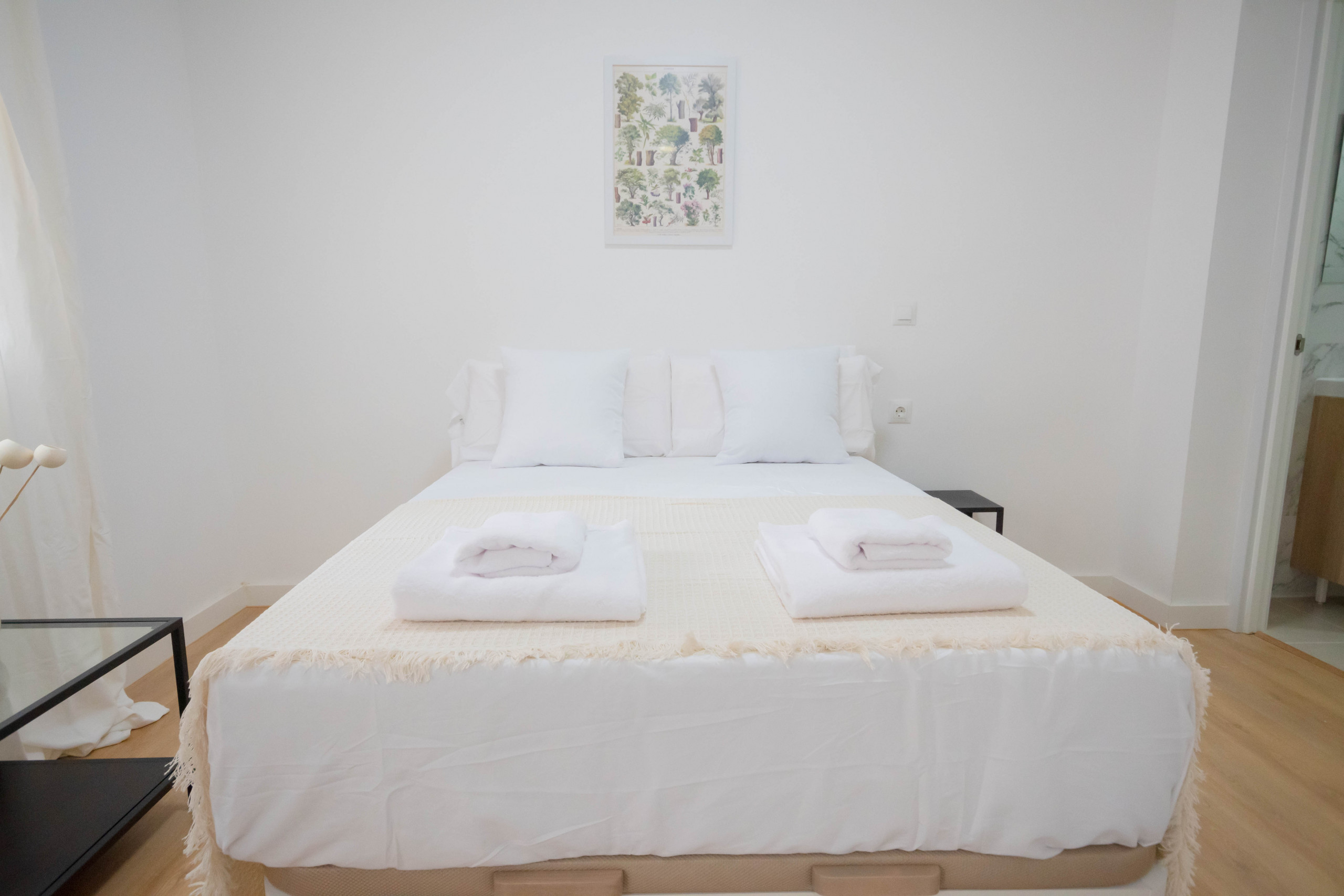 Este apartamento tipo estudio está recién reformado ha sido decorado con estilo y elegancia. Dispone de una cama de matrimonio y un sofá cama individual, así como de una pequeña cocina con todo el equipamiento necesario para que tu estancia sea cómoda. El baño tiene un plato de ducha