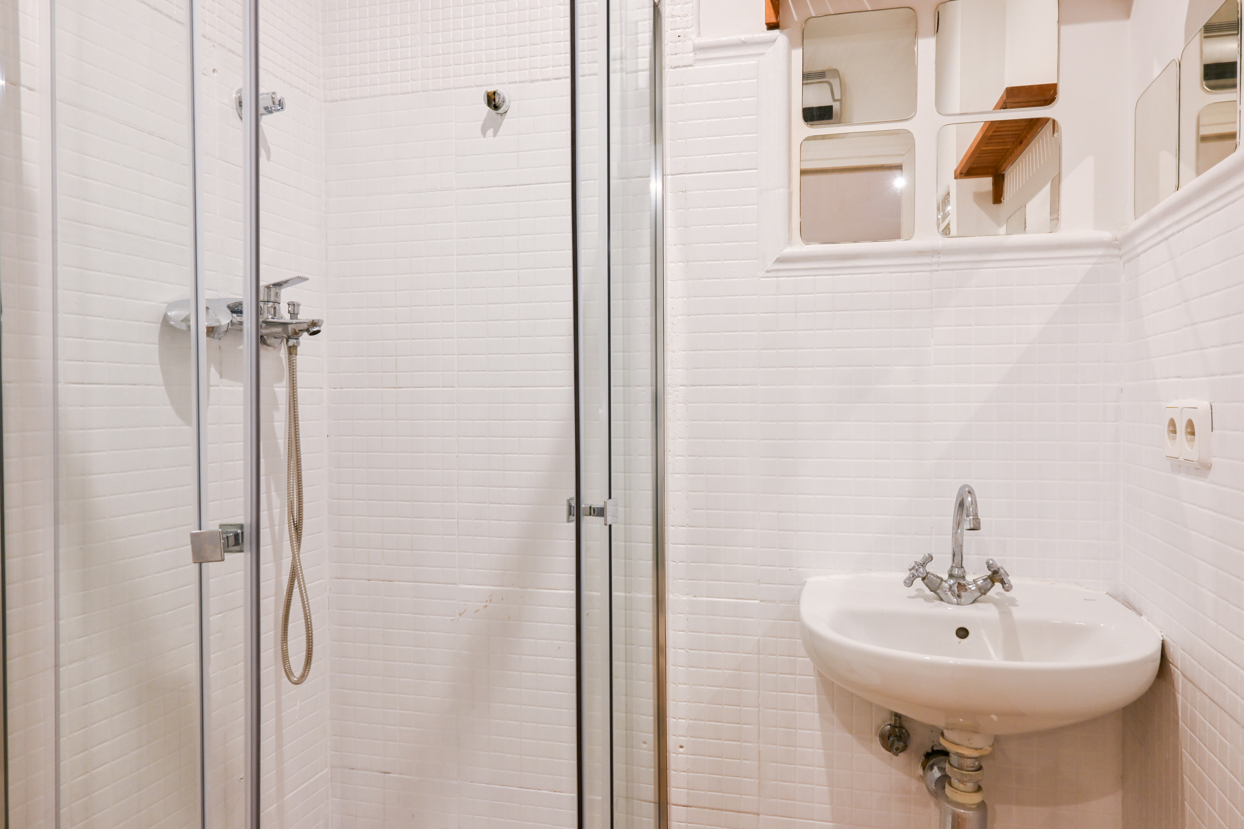 - El baño es moderno y está bien equipado, contando con un plato de ducha que garantiza una experiencia refrescante y relajante. Su diseño eficiente maximiza el espacio disponible, proporcionando comodidad sin comprometer la funcionalidad.