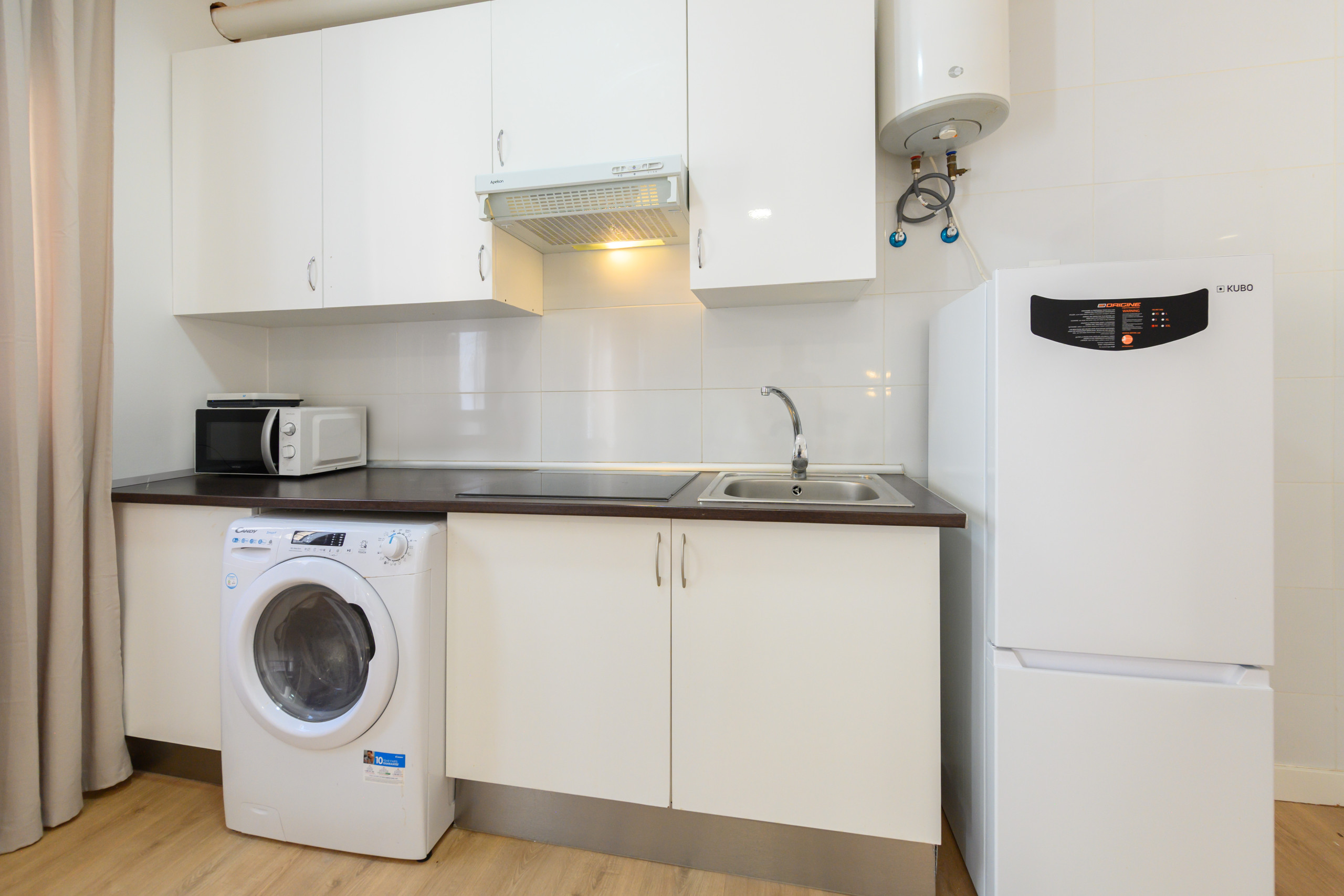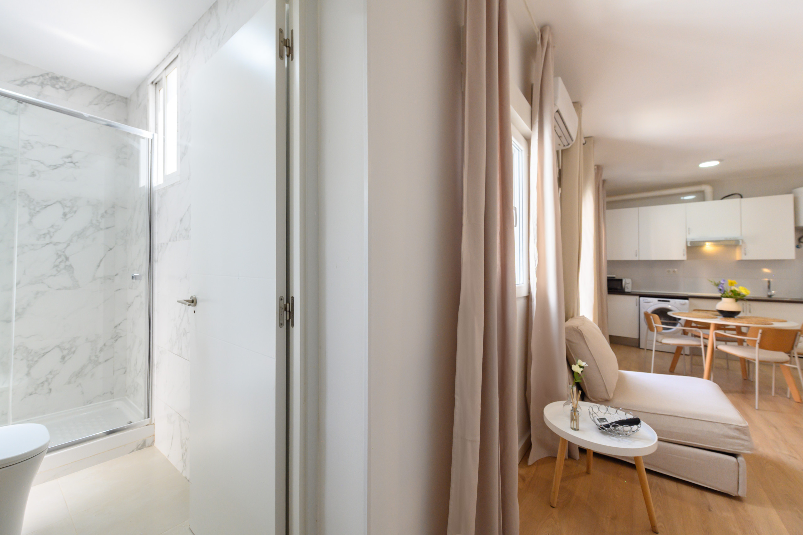 Este apartamento tipo estudio está recién reformado ha sido decorado con estilo y elegancia. Dispone de una cama de matrimonio y un sofá cama individual, así como una cocina con todo el equipamiento necesario para que tu estancia sea cómoda. Cuenta además con un baño con plato de ducha
