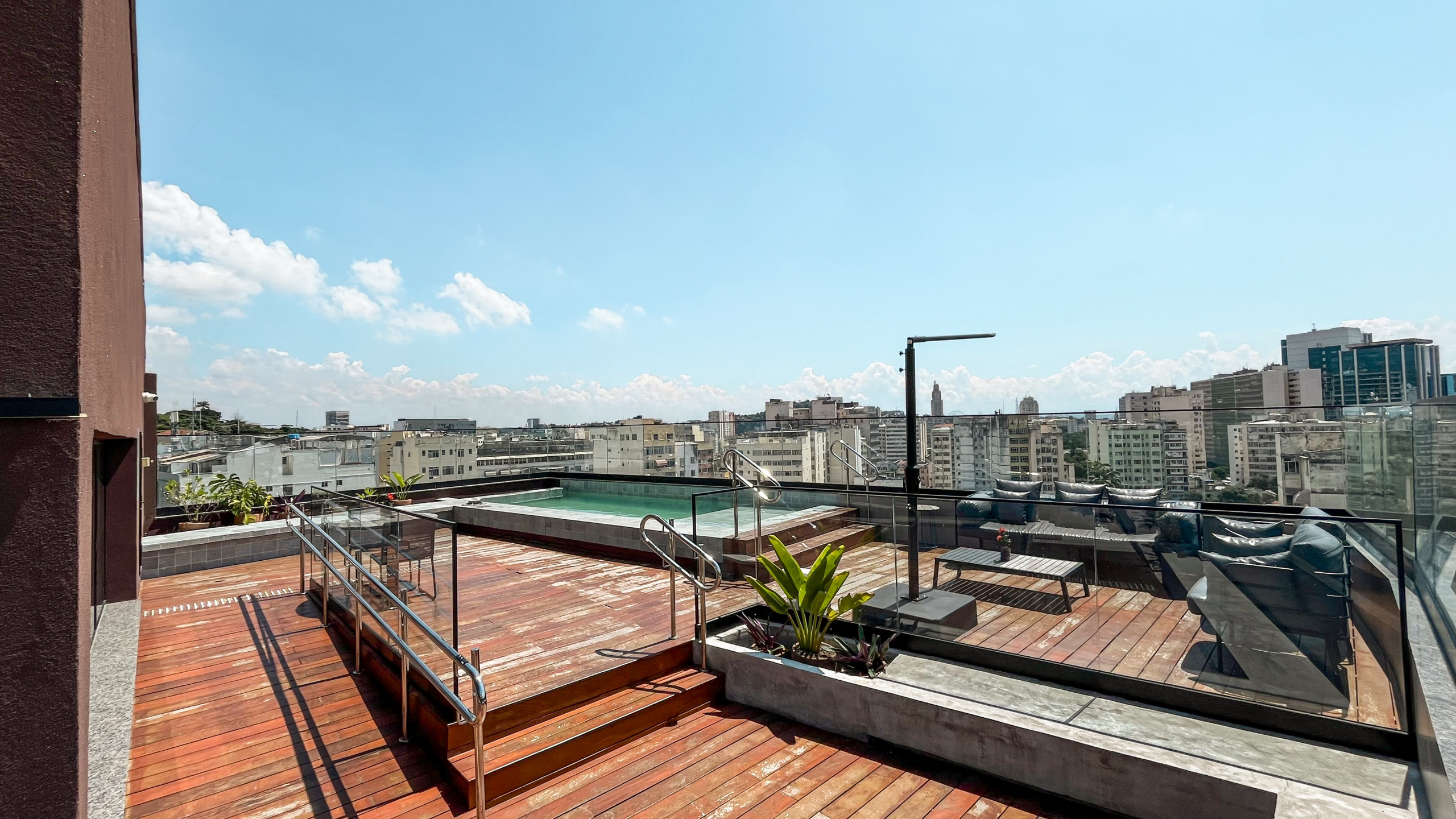 El edificio cuenta además con un rooftop en el 13º piso equipado con piscina. Aún posee gimnasio, coworking y lavandería. Ubicada en el corazón de Río de Janeiro, el alojamiento ofrece la oportunidad de vivir lo mejor de la ciudad, rodeada de excelentes restaurantes, mercados y un comercio vibrante que traduce el verdadero espíritu carioca.