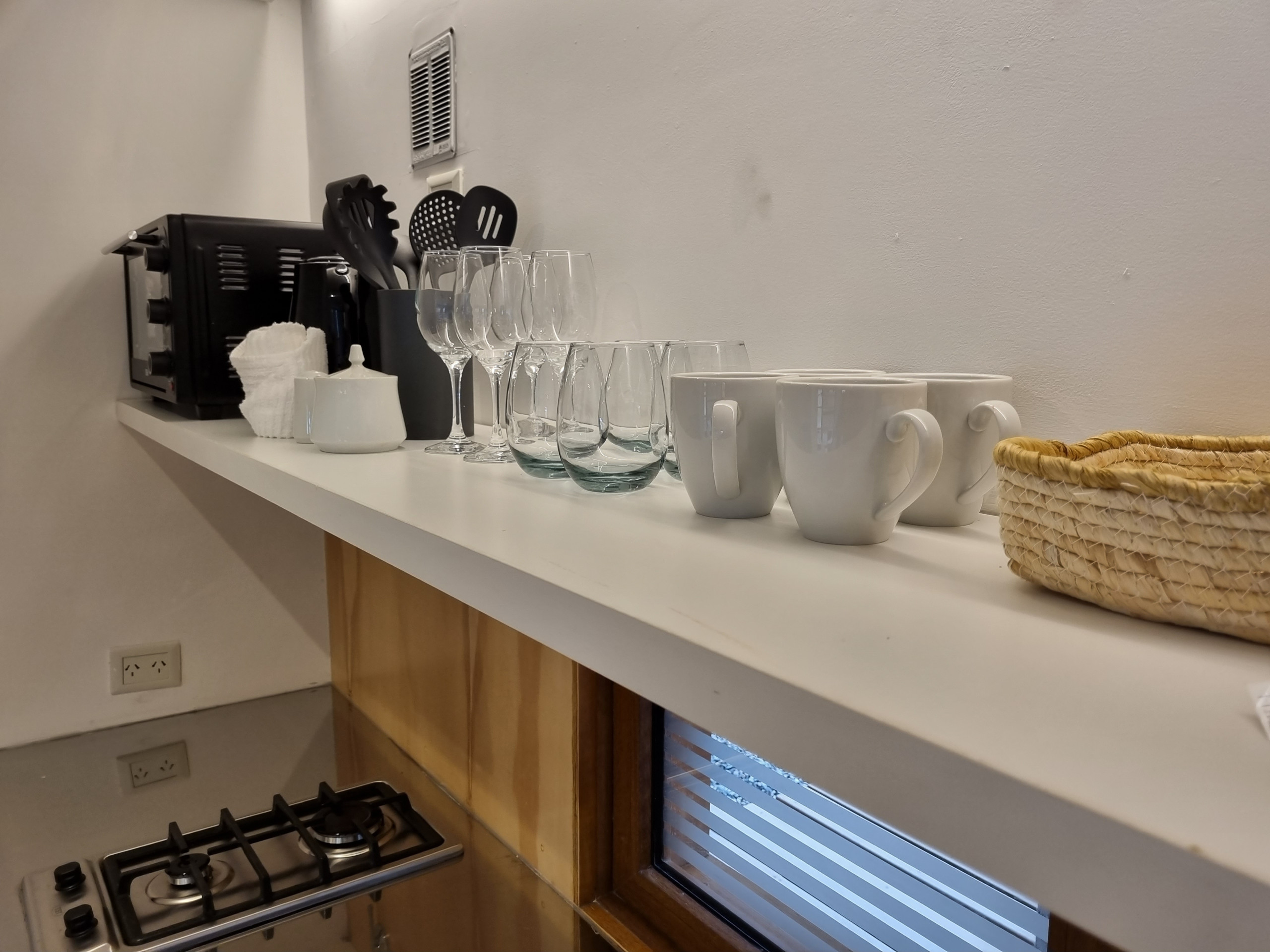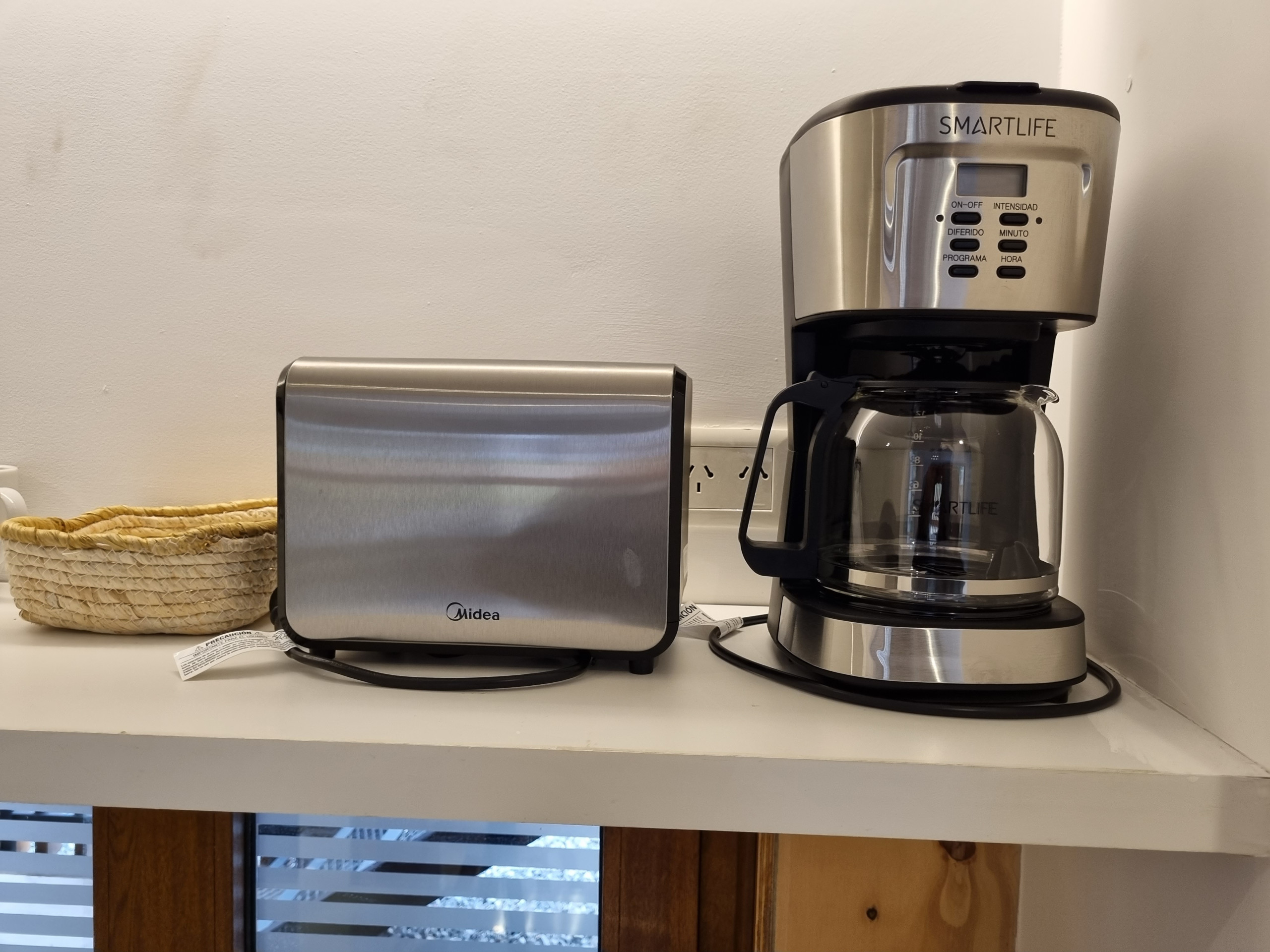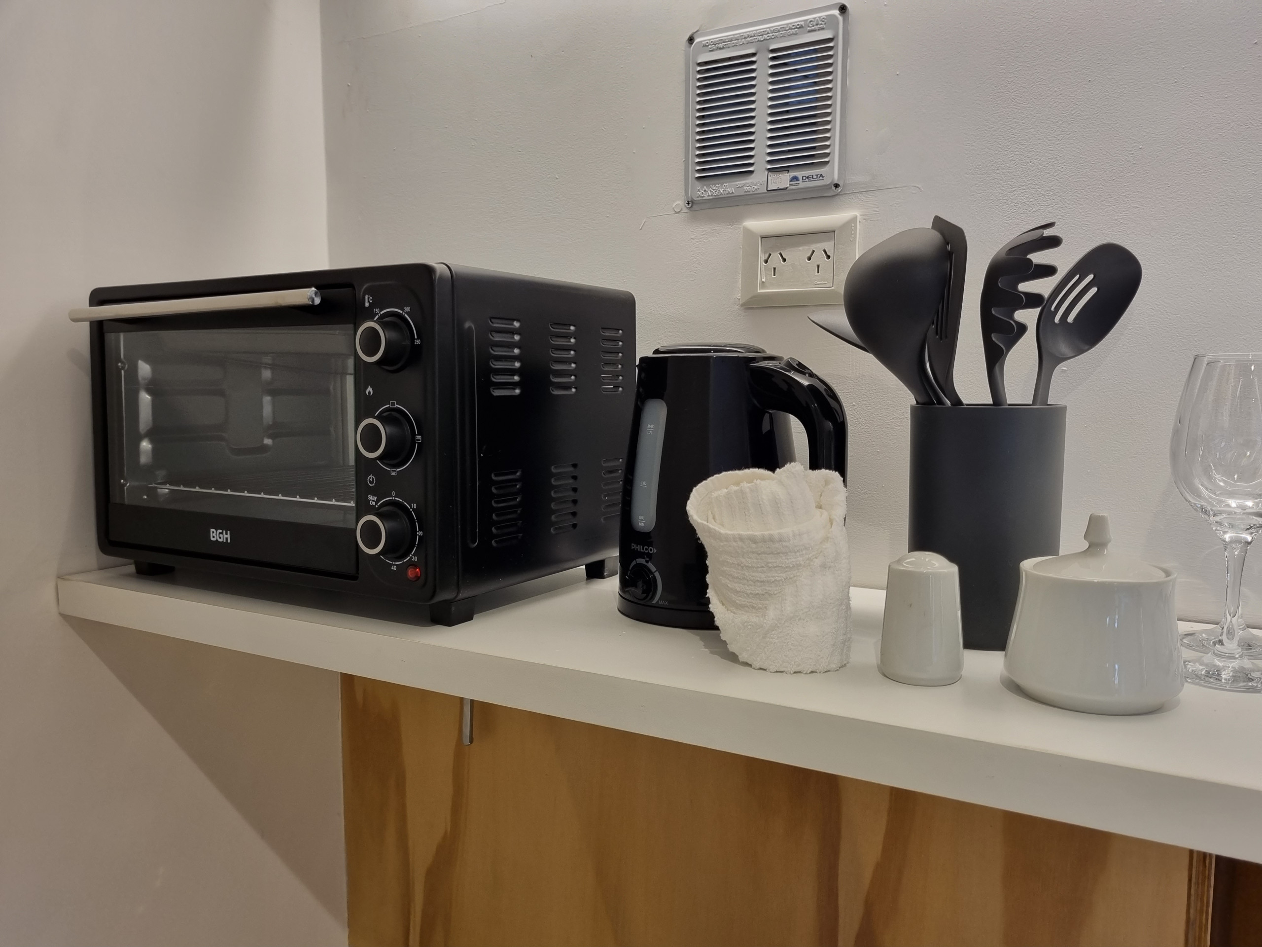 La cocina americana está completamente equipada con electrodomésticos de última generación, incluyendo refrigerador, lavadora, secadora, cafetera, microondas, tostadora, hervidor y una completa dotación de utensilios de cocina. Perfecta para preparar deliciosas comidas durante su estadía.