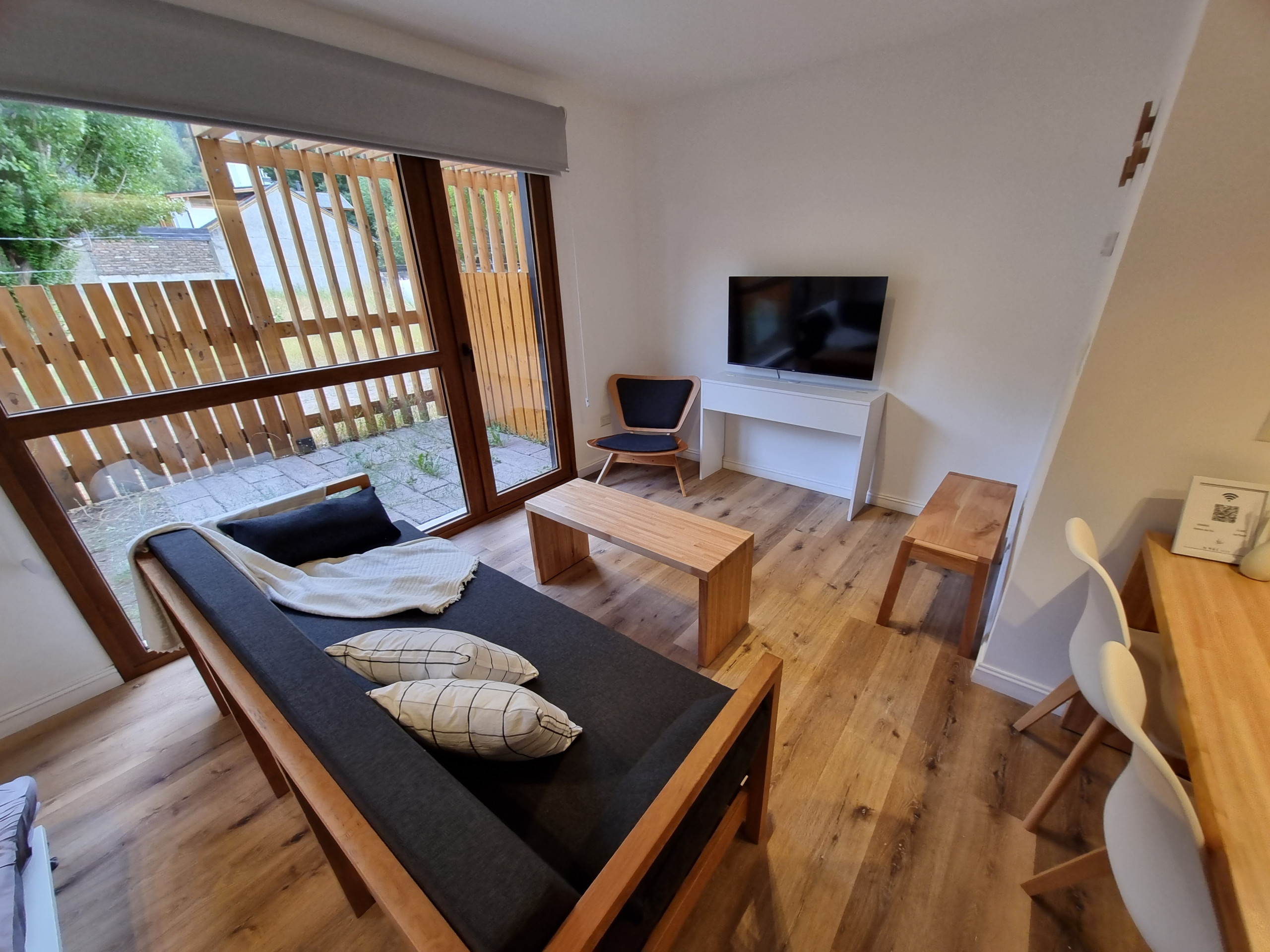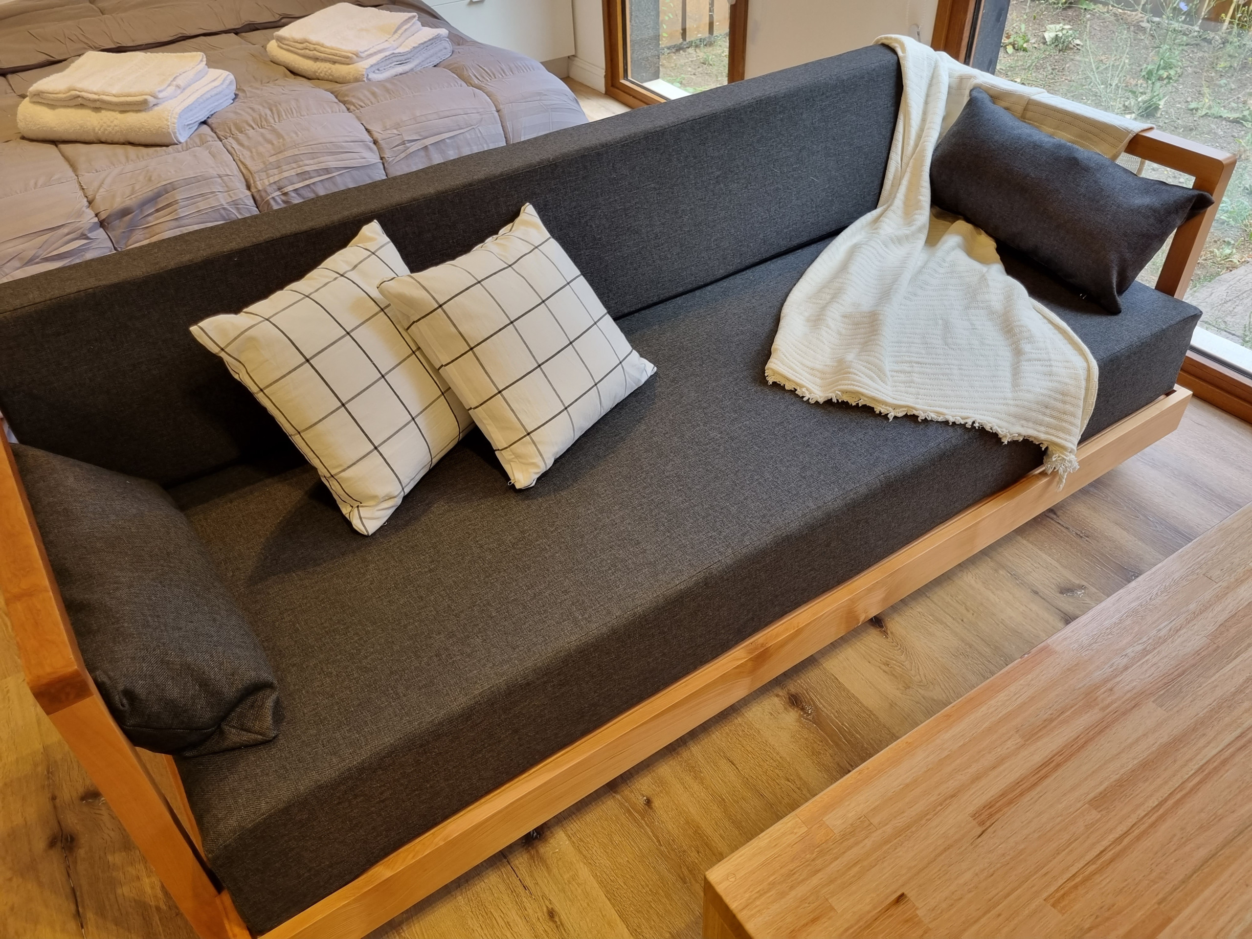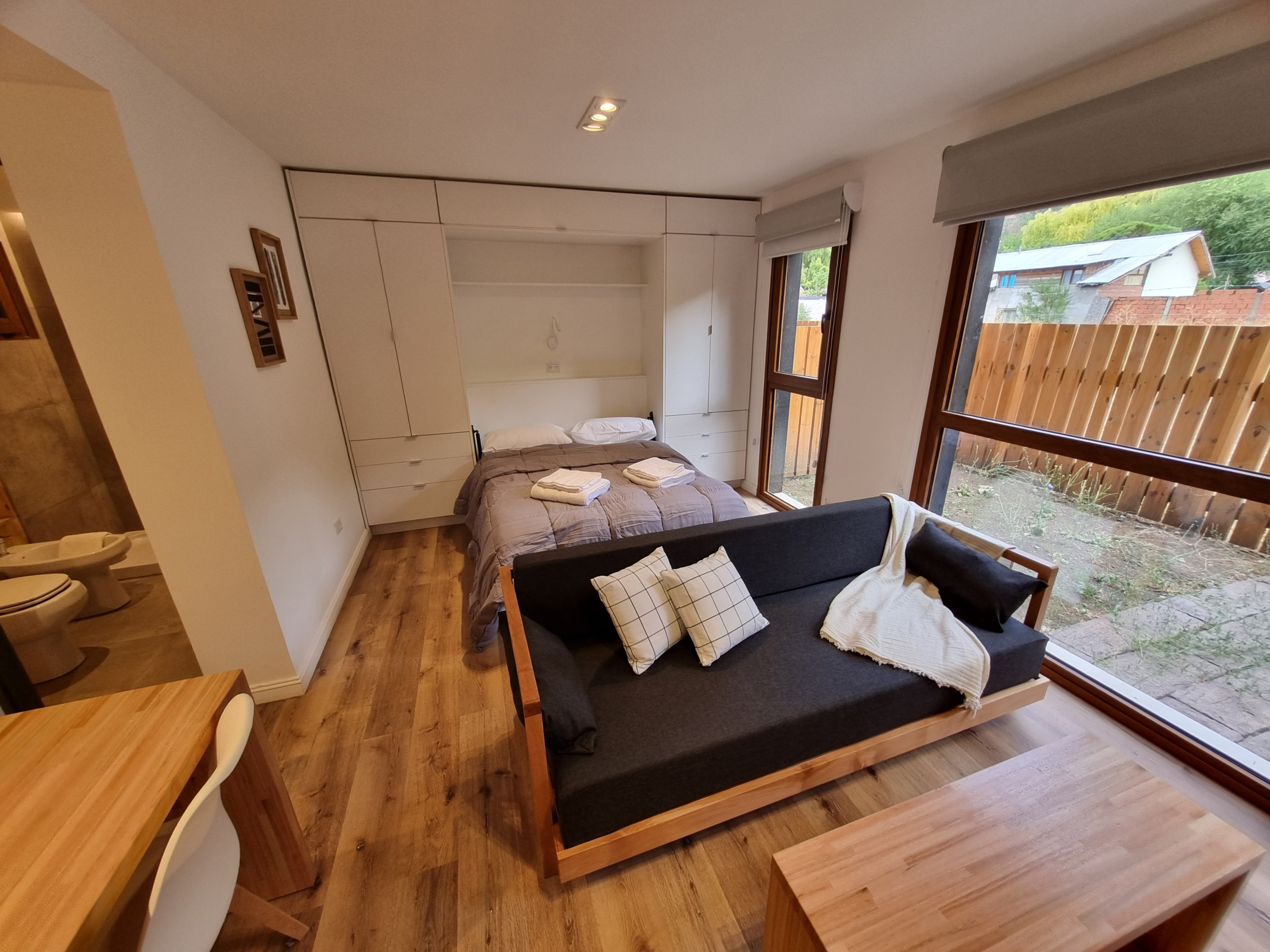 Este alojamiento de 35 metros cuadrados ofrece un diseño reciente y amueblado con gusto, ideal para disfrutar de la belleza de la Patagonia. Cuenta con una cama queen size y un sofá cama adicional, permitiendo alojar cómodamente hasta 3 personas.