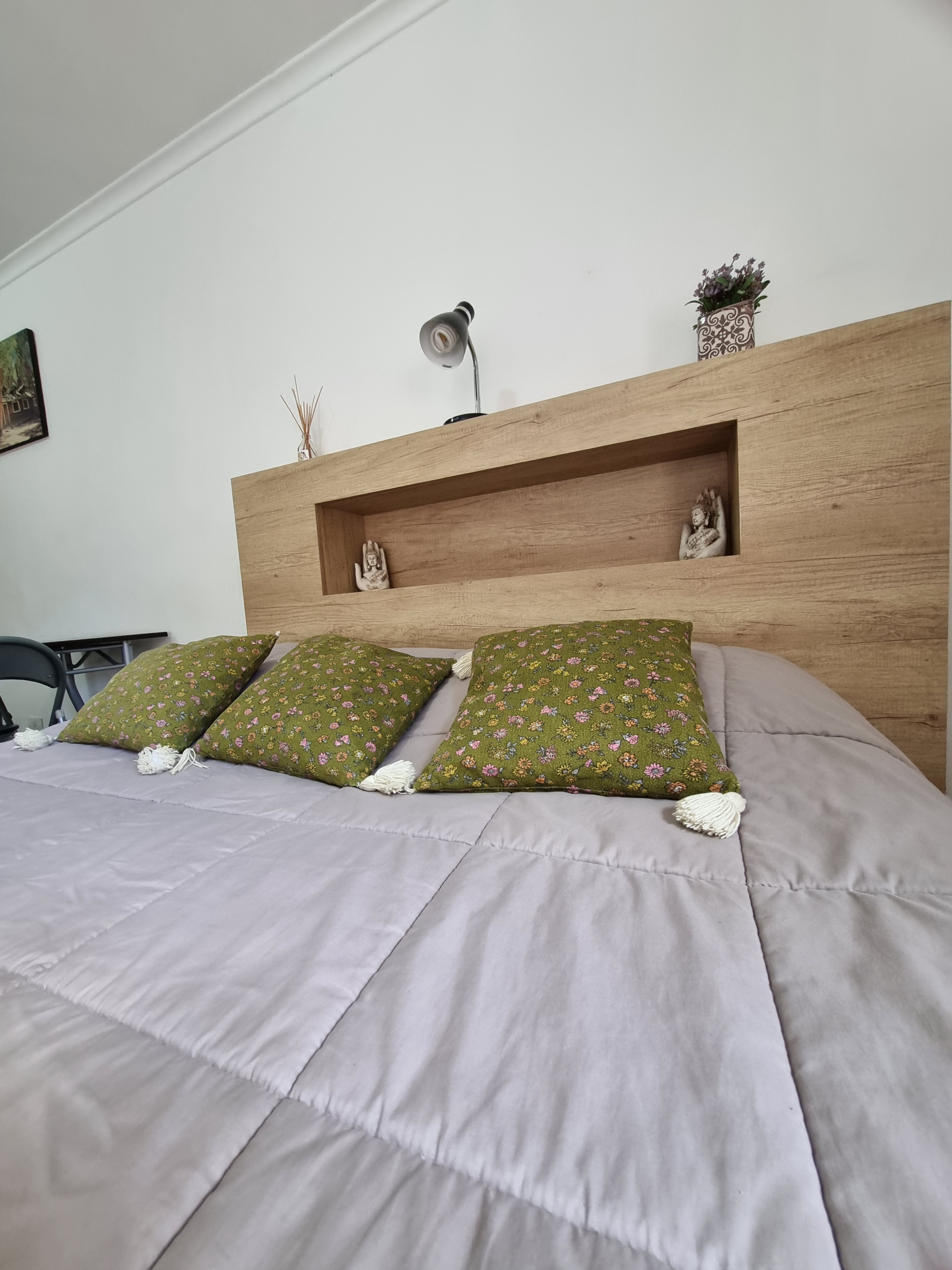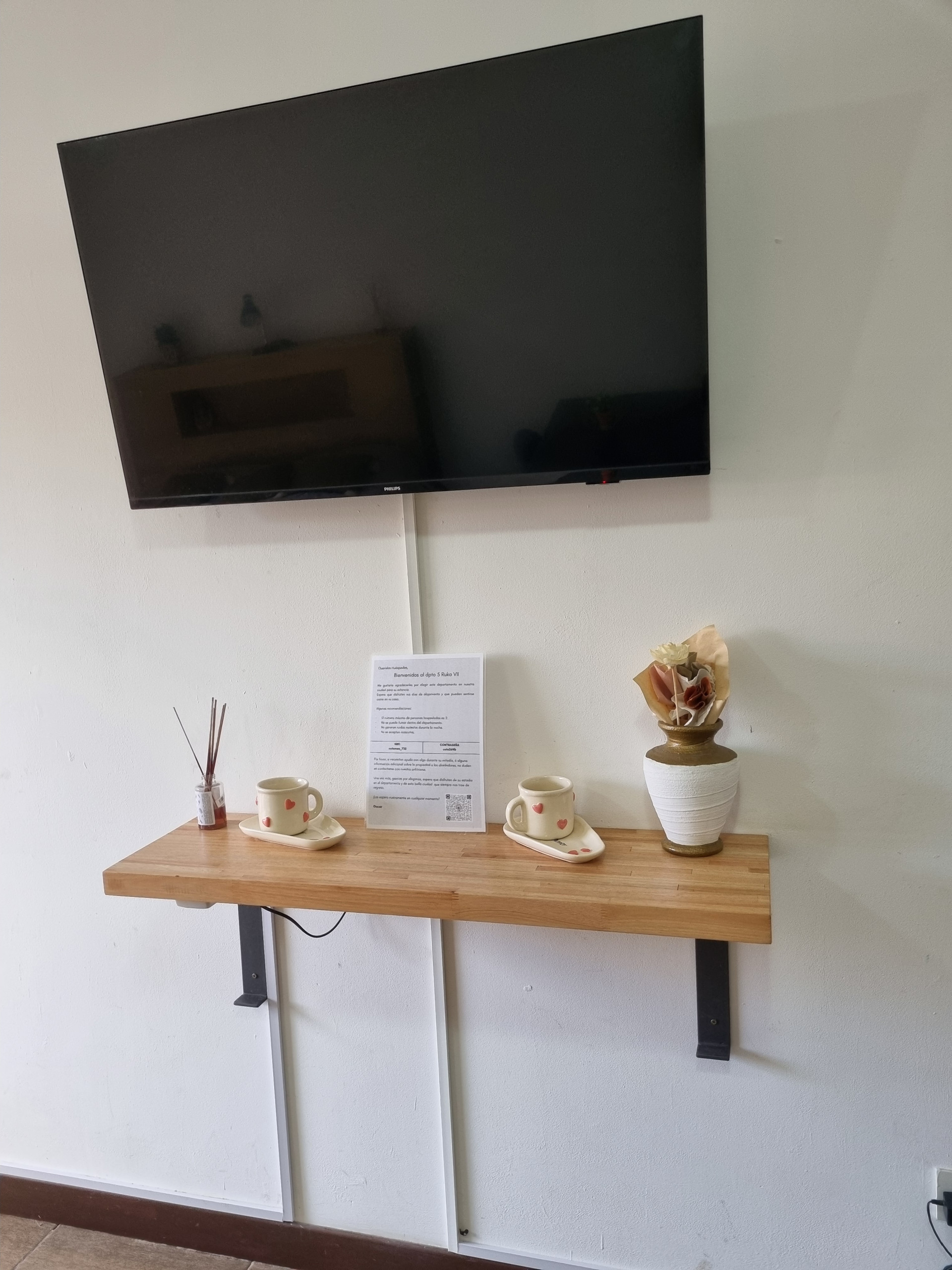 El apartamento cuenta con una cama matrimonial y está equipado con todas las comodidades necesarias para una estancia confortable. Disfruta de conexión WiFi de alta velocidad, calefacción central para los días más fríos y una cocina americana completamente equipada con electrodomésticos como heladera, microondas, cafetera, tostadora y hervidor.