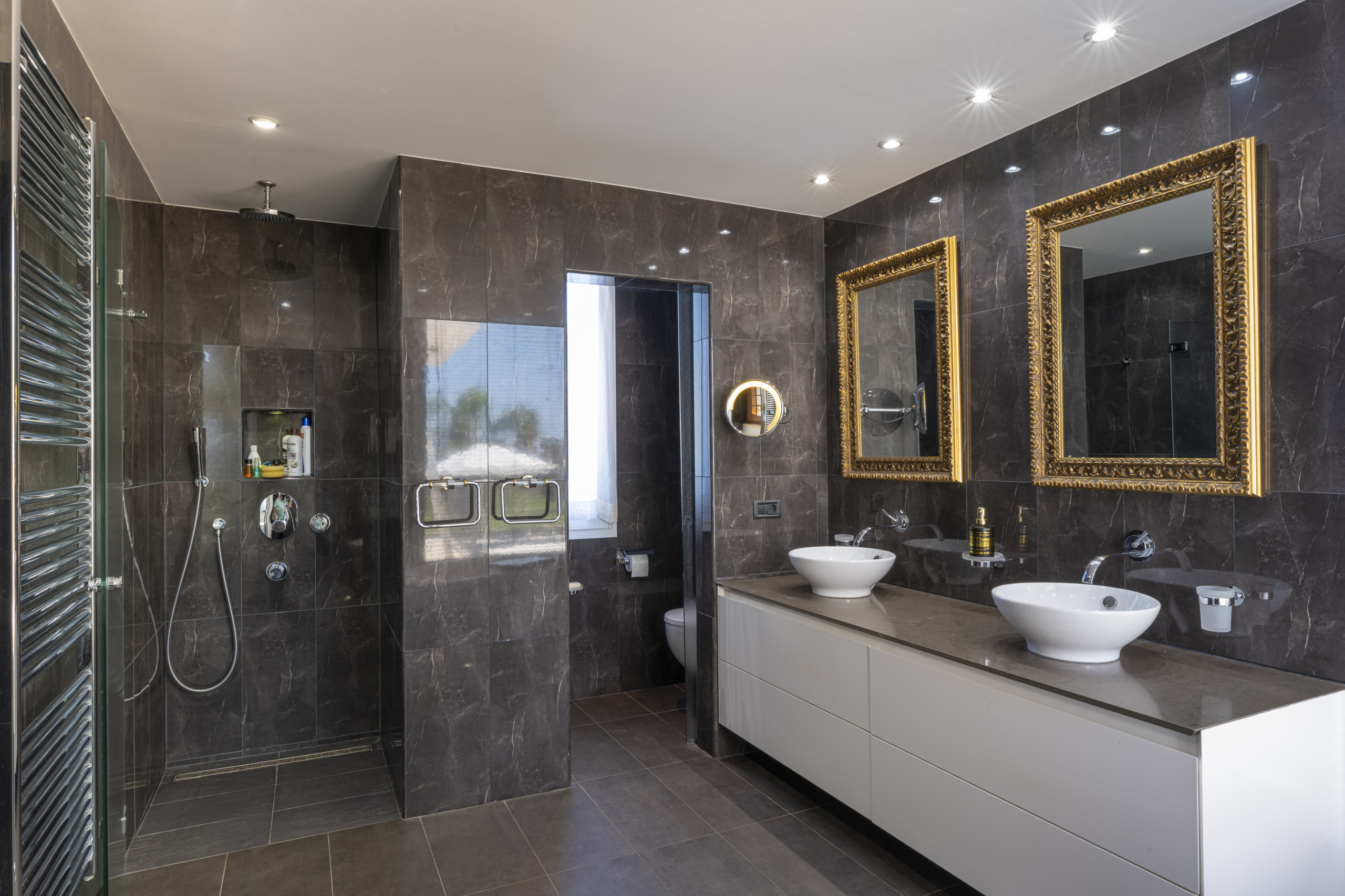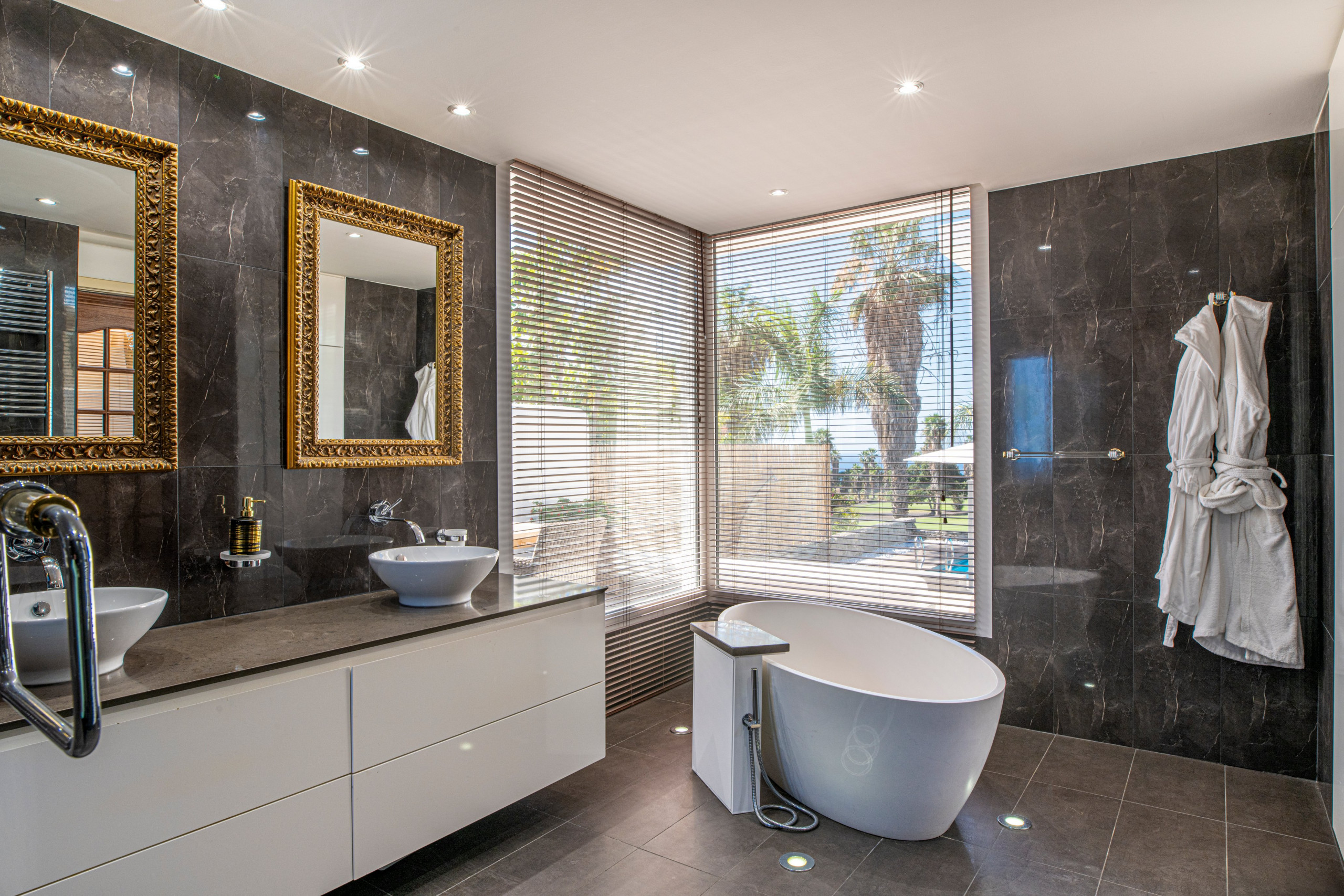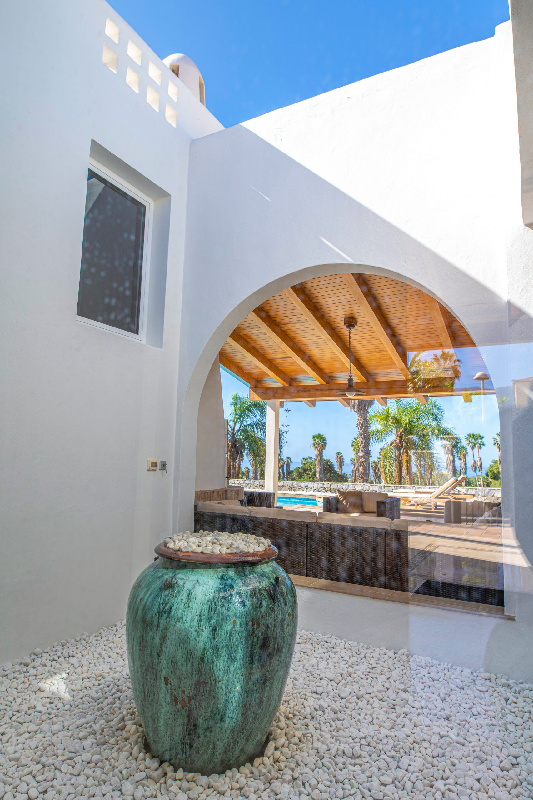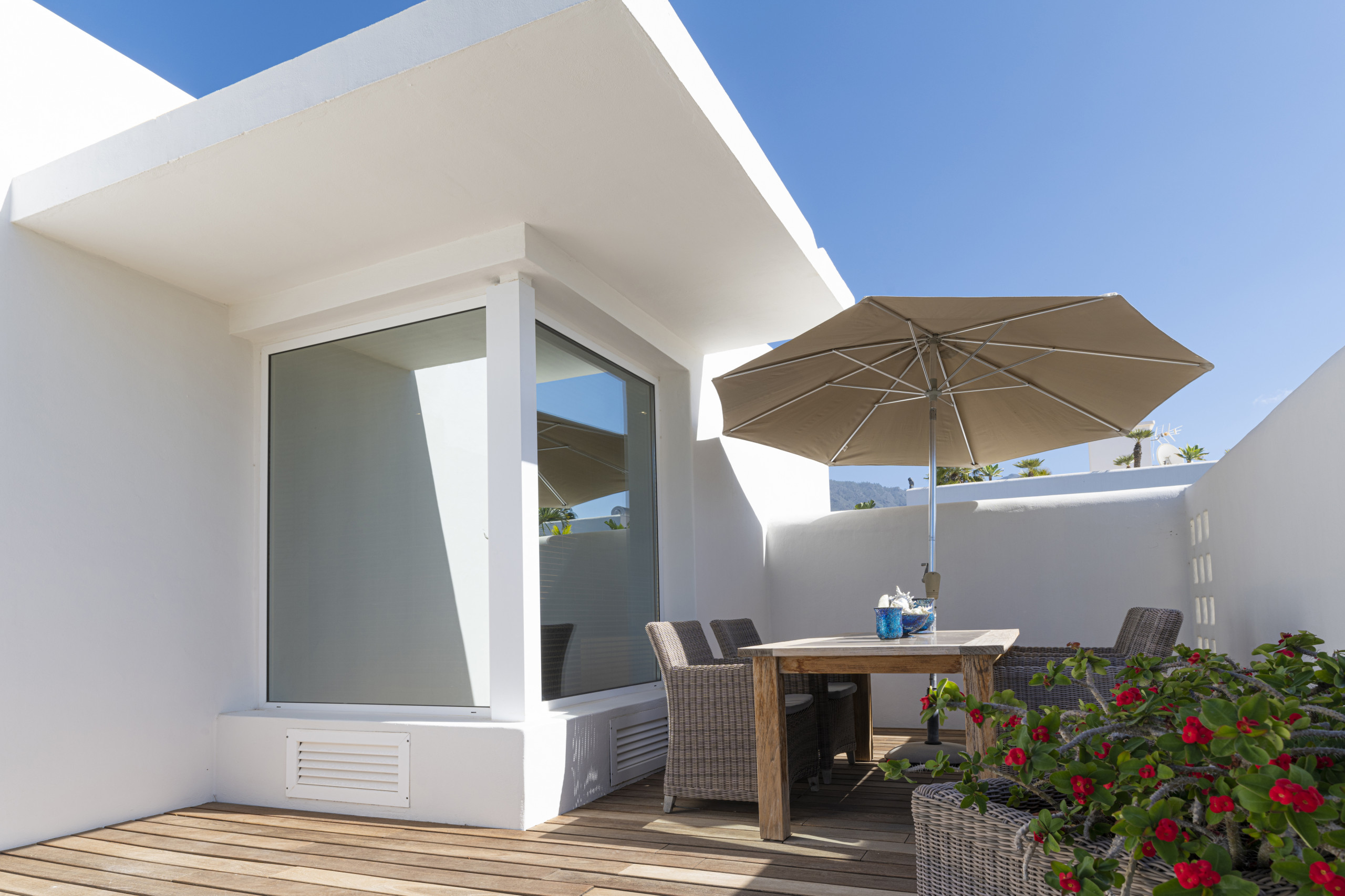 En el exterior, la villa dispone de una espectacular terraza con comedor cubierto para 10 personas, zona chill out, 10 tumbonas, 5 sombrillas y una piscina privada climatizada a 28°C (13,5 x 5,5 m) con ducha exterior de agua caliente. La experiencia se completa con una gran zona gourmet que incluye barbacoa de gas y barbacoa de obra con carbón, ideal para veladas al aire libre.