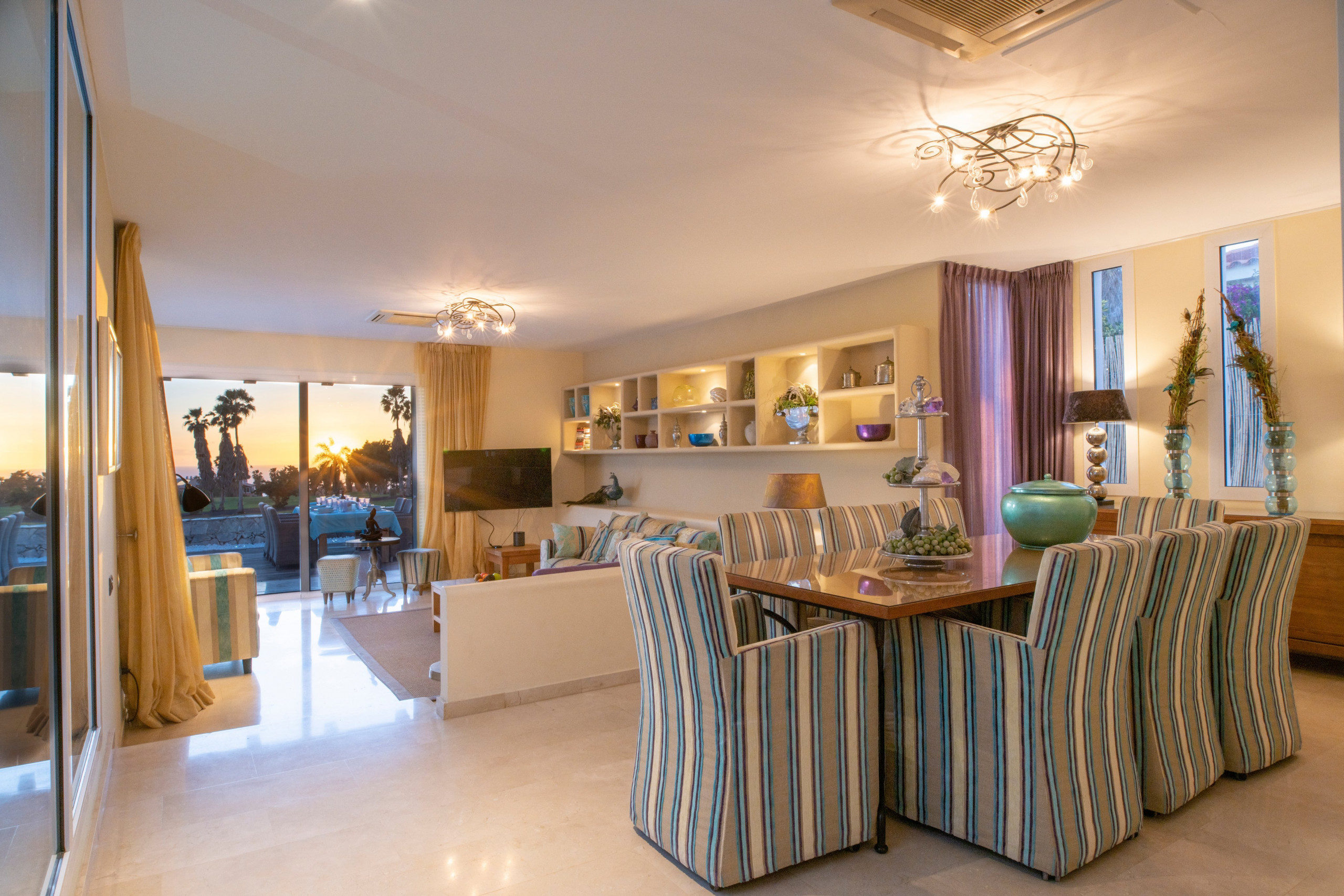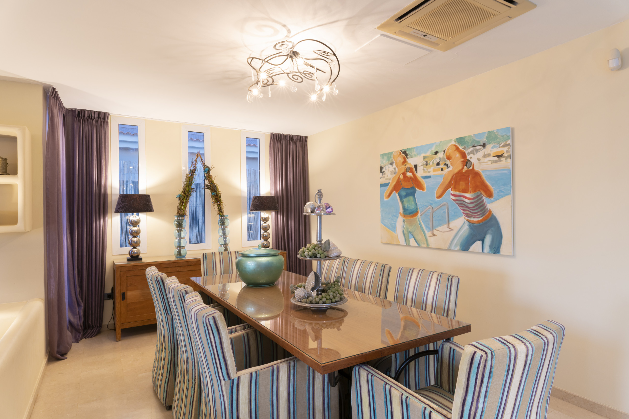 Diseñada para albergar hasta 10 adultos y 2 niños pequeños, la propiedad combina amplitud, confort y un estilo refinado en cada uno de sus espacios. El interior está cuidadosamente decorado con mobiliario de alta calidad y dispone de cinco dormitorios, todos con caja fuerte, y cuatro elegantes baños completos. El amplio salón cuenta con un sistema de sonido Sonos, televisión Samsung de 55” y cómodas zonas de estar para compartir en familia o con amigos. La cocina está totalmente equipada con electrodomésticos de última generación y todo lo necesario para una estancia sin preocupaciones.