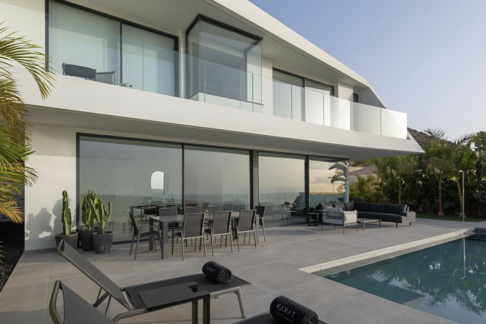 Elevándose sobre la majestuosa costa de Adeje, Villa Eraluna es una obra maestra de elegancia contemporánea y calma atlántica. Distribuida en tres niveles perfectamente integrados en el paisaje, esta residencia redefine el lujo residencial en un entorno donde el mar y la luz se convierten en protagonistas.
