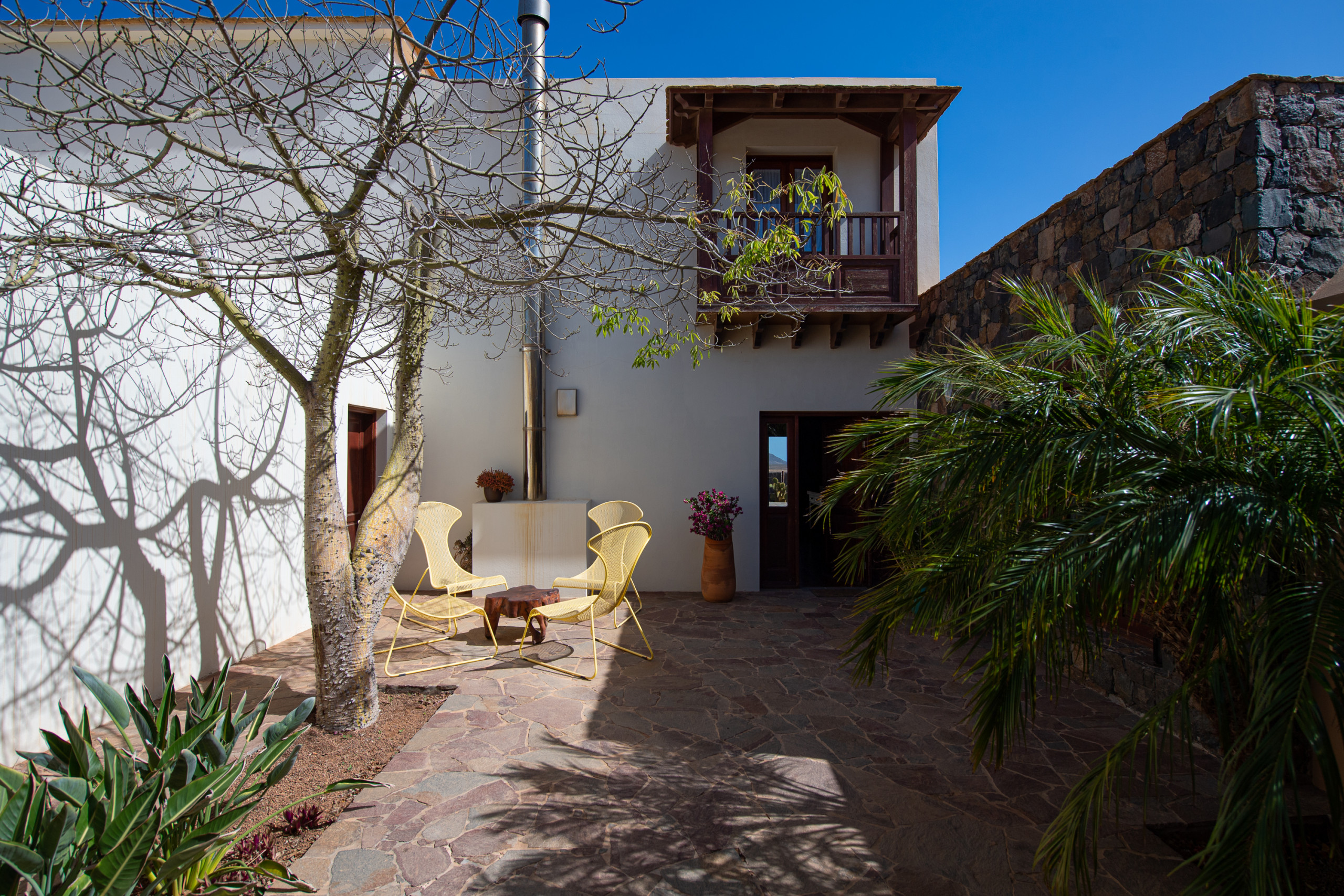 Desde sus terrazas podrás disfrutar de impresionantes vistas al paisaje volcánico que define el alma de Fuerteventura. El patio y las zonas exteriores invitan a relajarse bajo el sol, compartir una comida al aire libre o simplemente dejarse llevar por la tranquilidad del entorno.