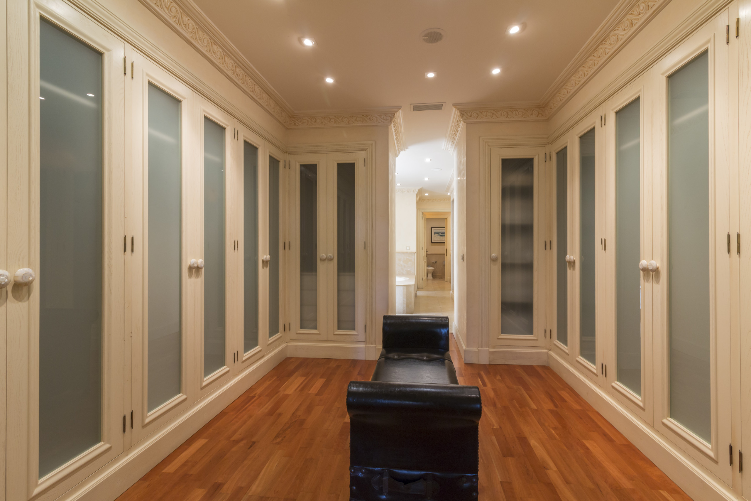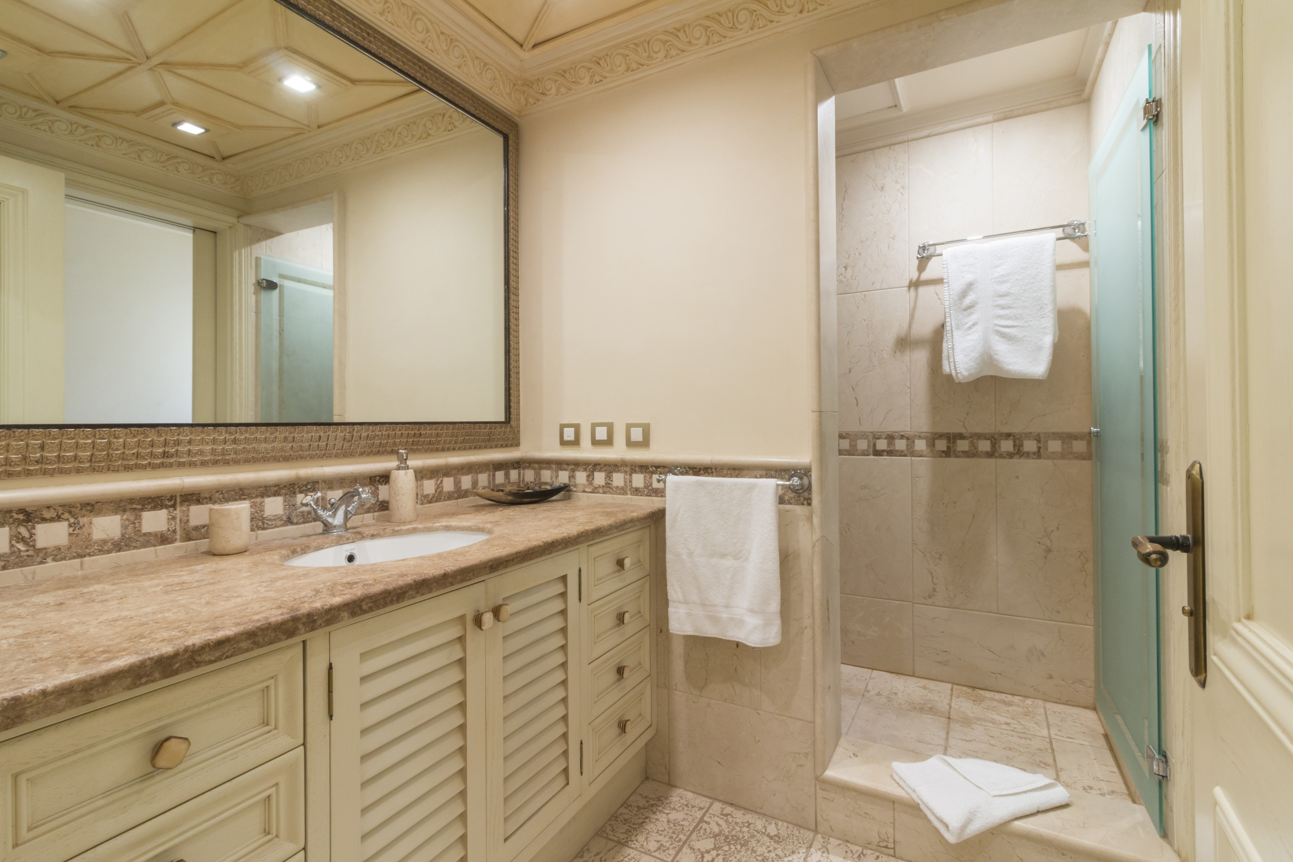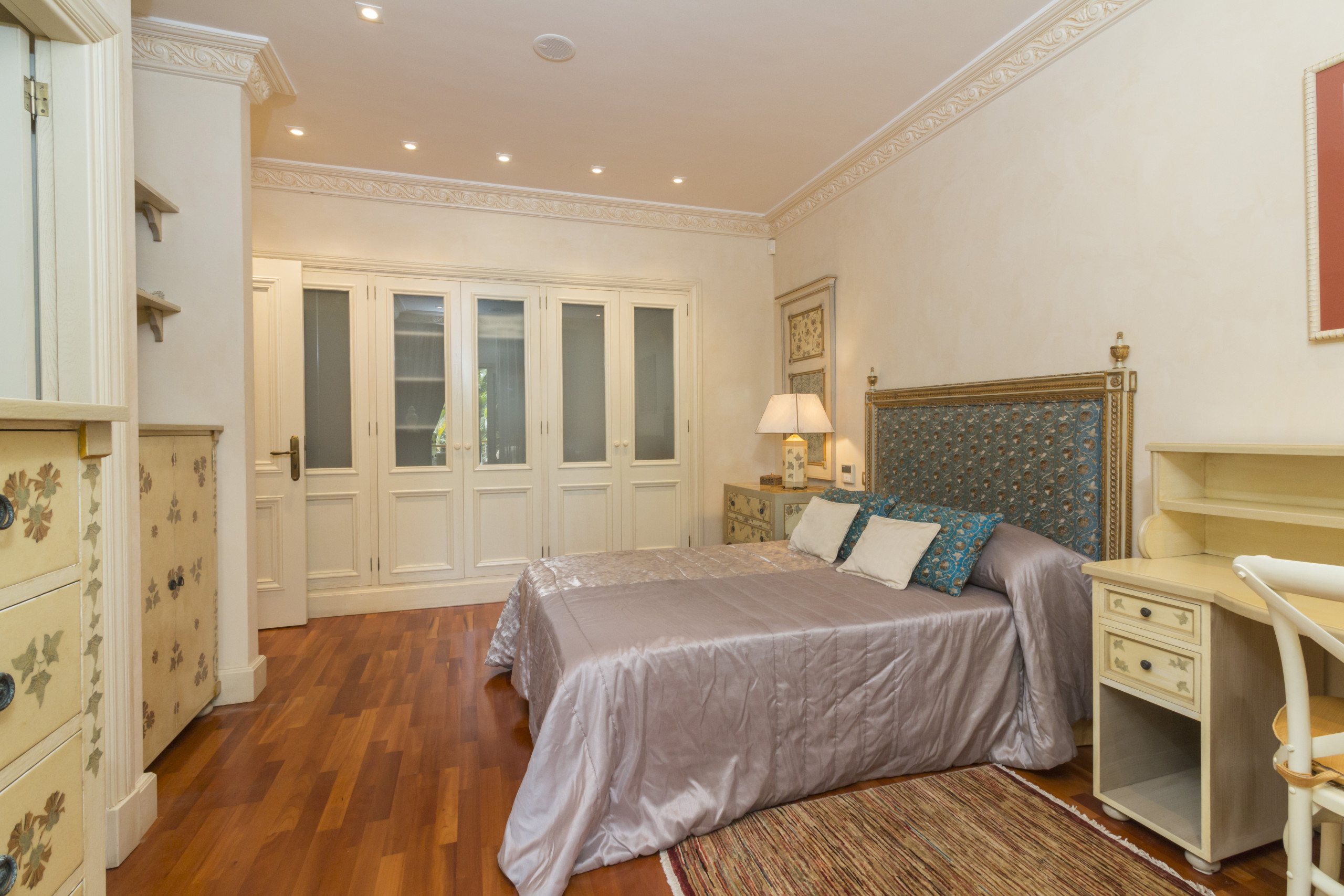 Distribuida en tres plantas y conectada por ascensor, esta villa puede alojar cómodamente hasta 10 personas. Dispone de cuatro suites principales, todas con baño en suite, además de un apartamento independiente completamente equipado con dormitorio, baño, cocina y salón. En total, la propiedad cuenta con 7 baños, además de espacios dedicados al relax y el bienestar como un baño turco (hammam), jacuzzi privado en la master suite y una espectacular piscina climatizada.