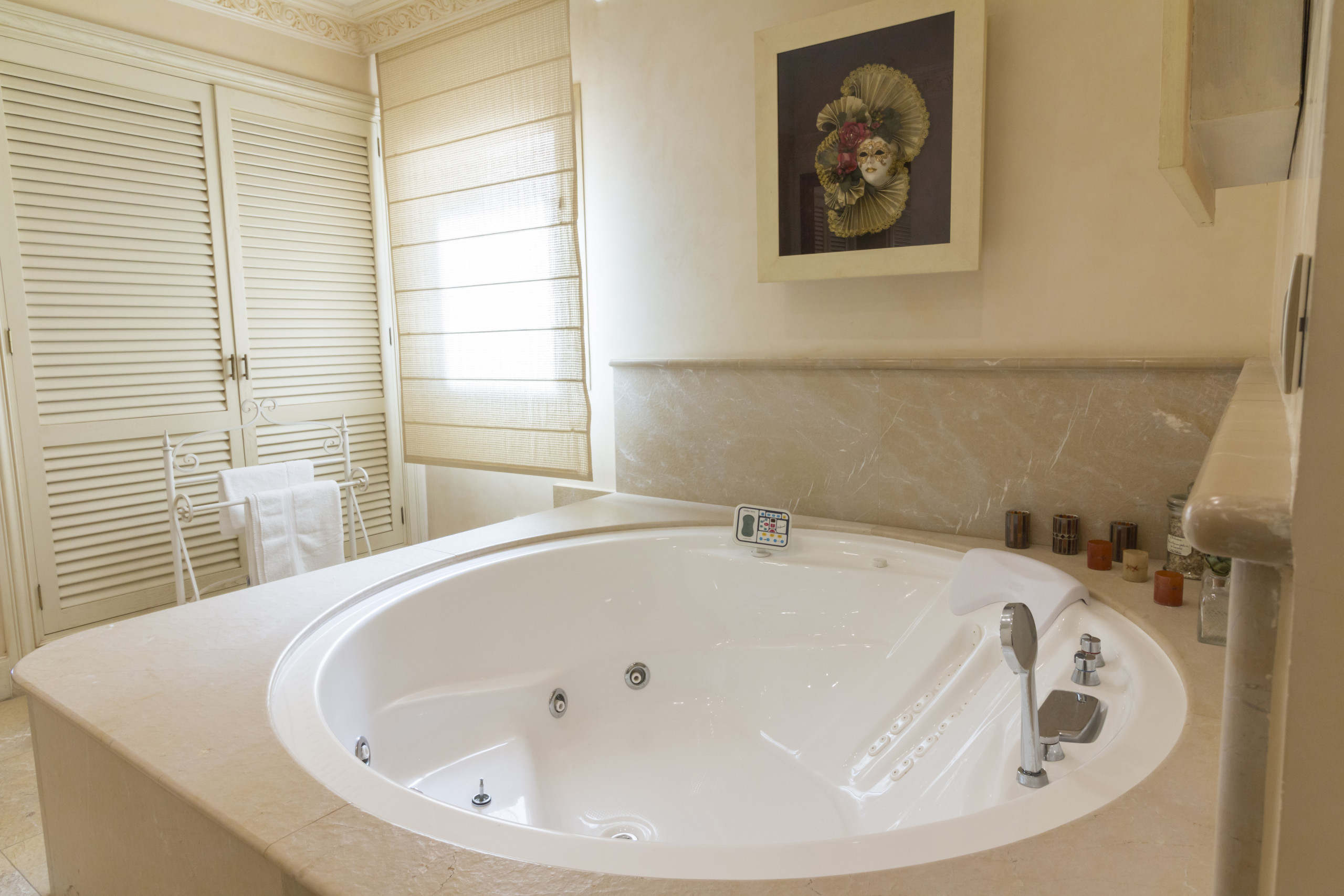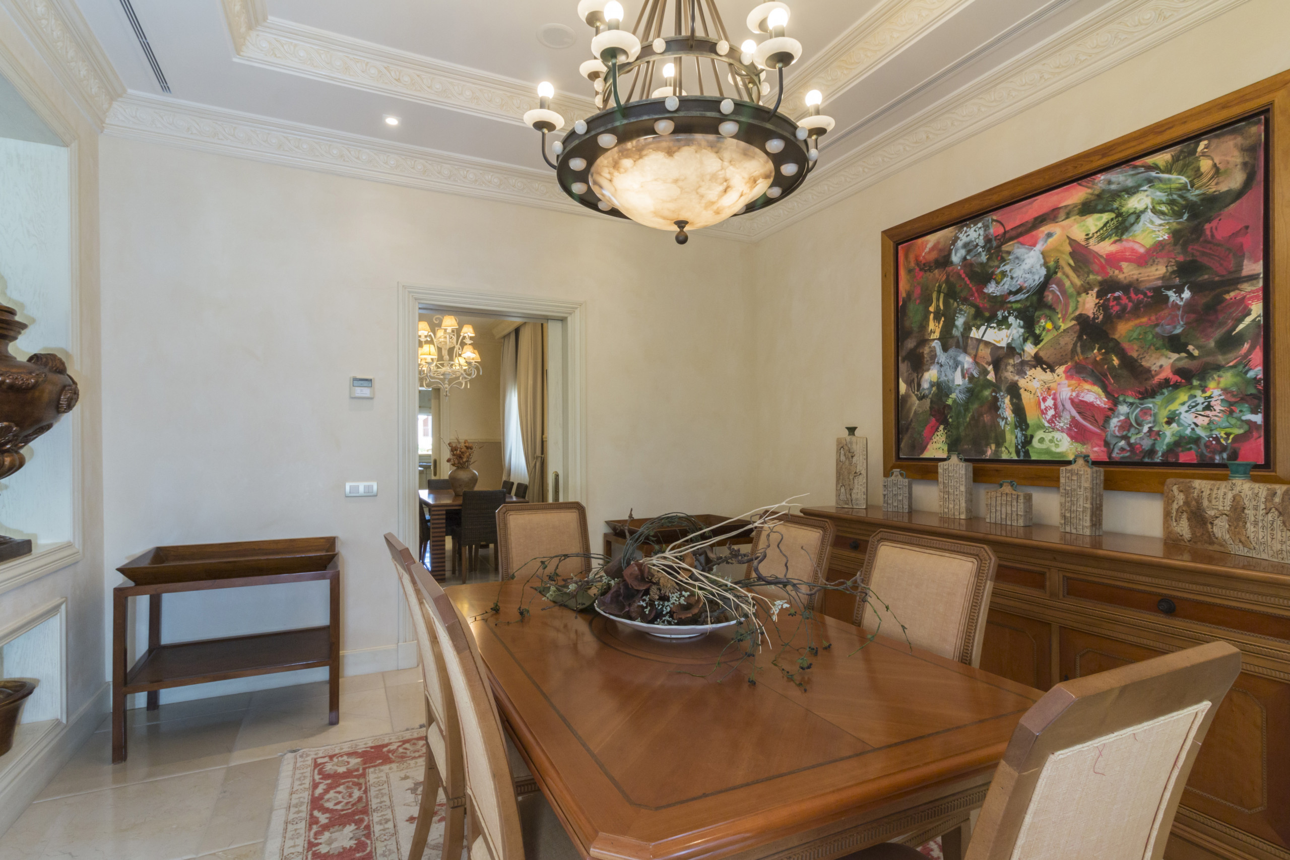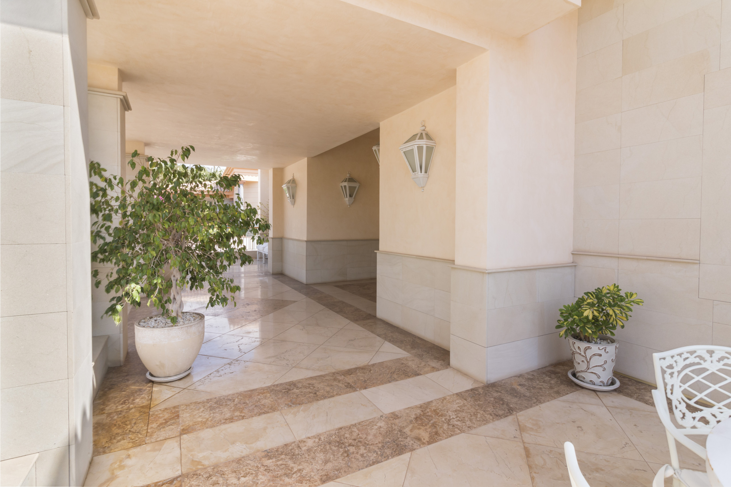 Distribuida en tres plantas y conectada por ascensor, esta villa puede alojar cómodamente hasta 10 personas. Dispone de cuatro suites principales, todas con baño en suite, además de un apartamento independiente completamente equipado con dormitorio, baño, cocina y salón. En total, la propiedad cuenta con 7 baños, además de espacios dedicados al relax y el bienestar como un baño turco (hammam), jacuzzi privado en la master suite y una espectacular piscina climatizada.