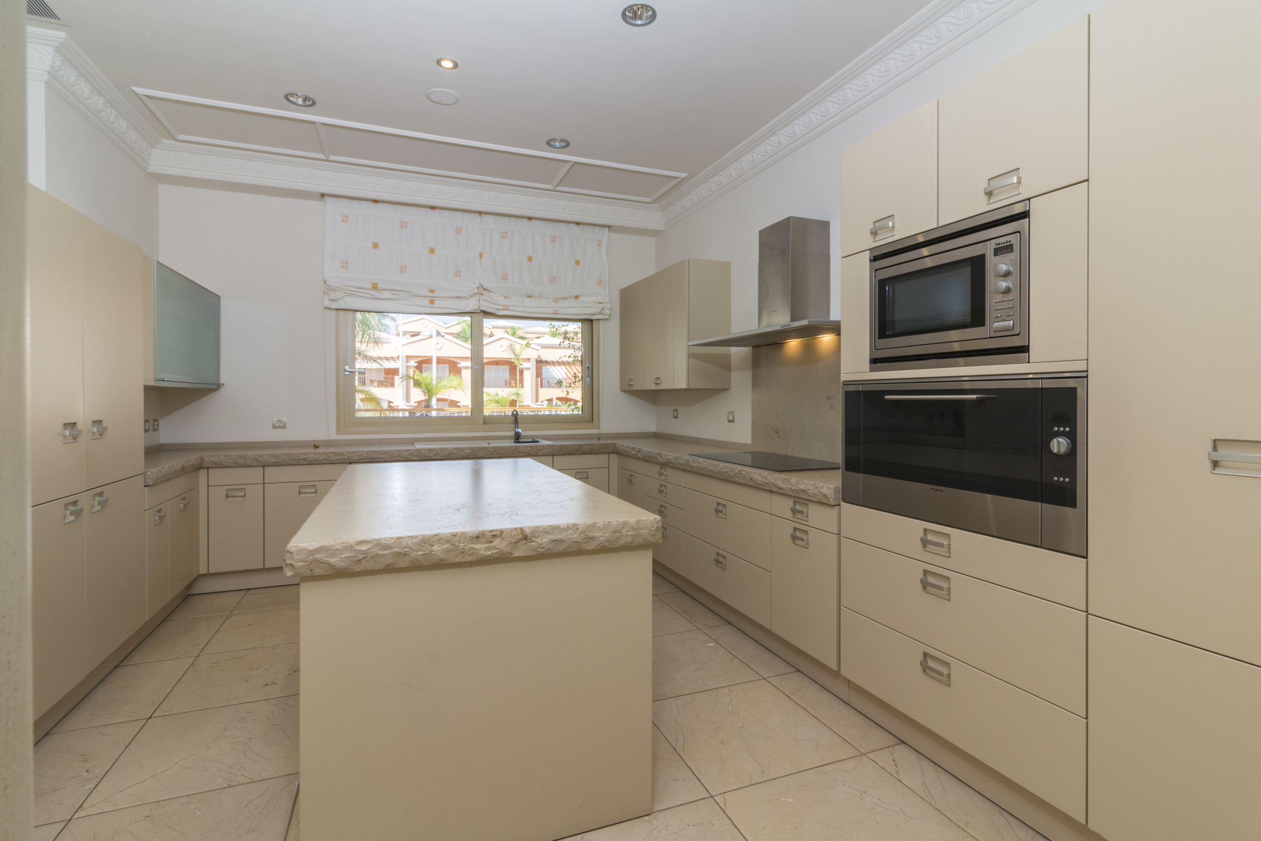 La cocina independiente, de vitrocerámica, está totalmente equipada con nevera, microondas, horno, congelador, lavavajillas, lavadora, secadora, vajilla y menaje completo, tostadora y hervidor de agua.