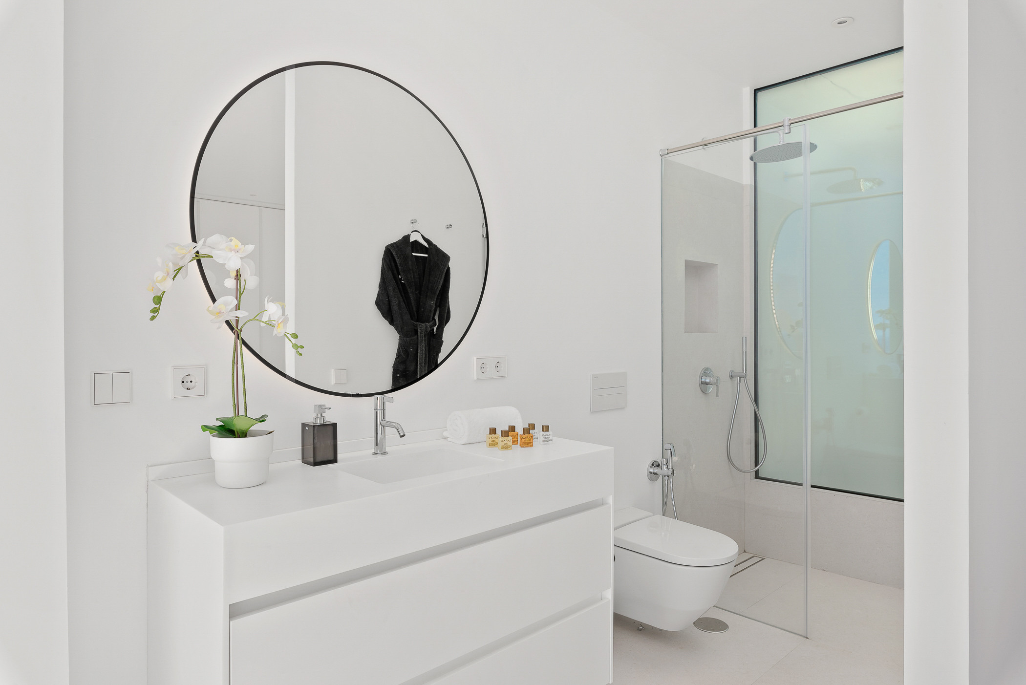 En el exterior, la protagonista es una piscina privada infinita que parece fundirse con el mar. La zona chill-out, el comedor al aire libre y los espacios ajardinados ofrecen rincones perfectos para el descanso, la conversación o simplemente contemplar el atardecer.