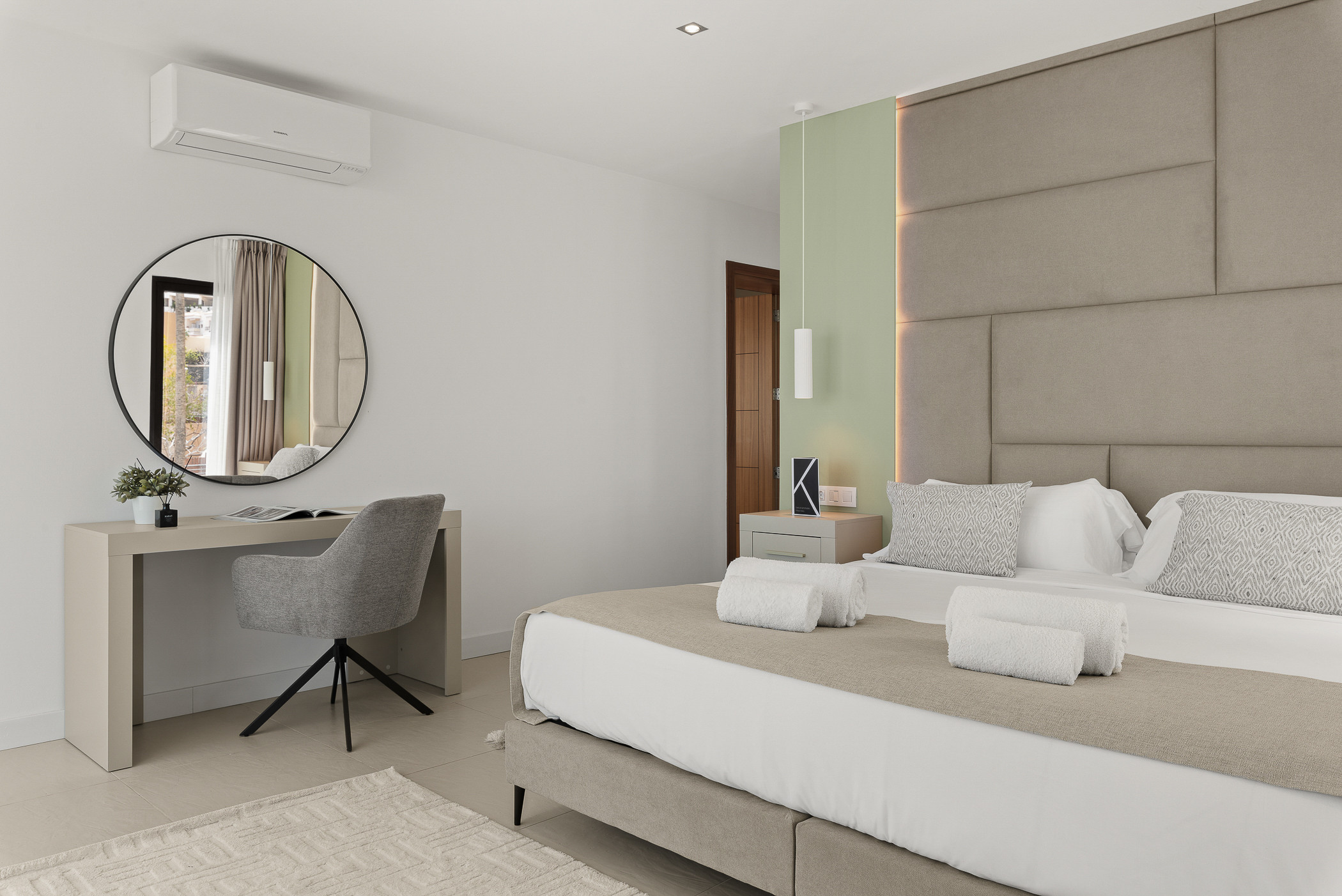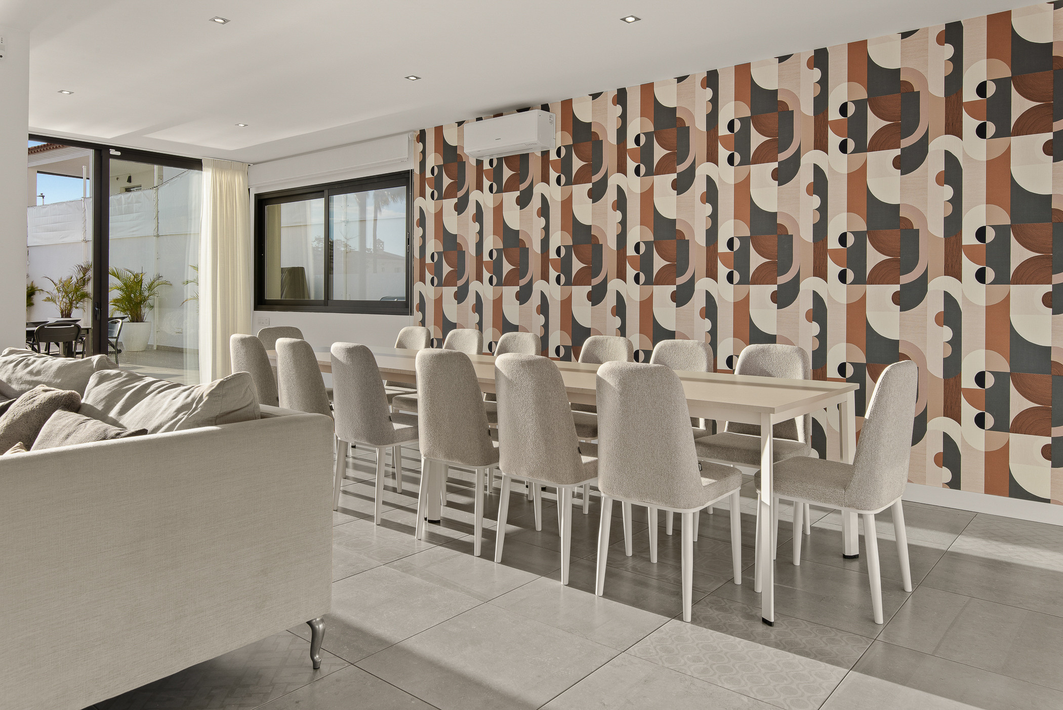 Con 8 amplias habitaciones tipo suite, cada una con su propio baño, la propiedad ha sido pensada para acoger cómodamente a familias numerosas o grupos de amigos que desean vivir una experiencia de primer nivel.