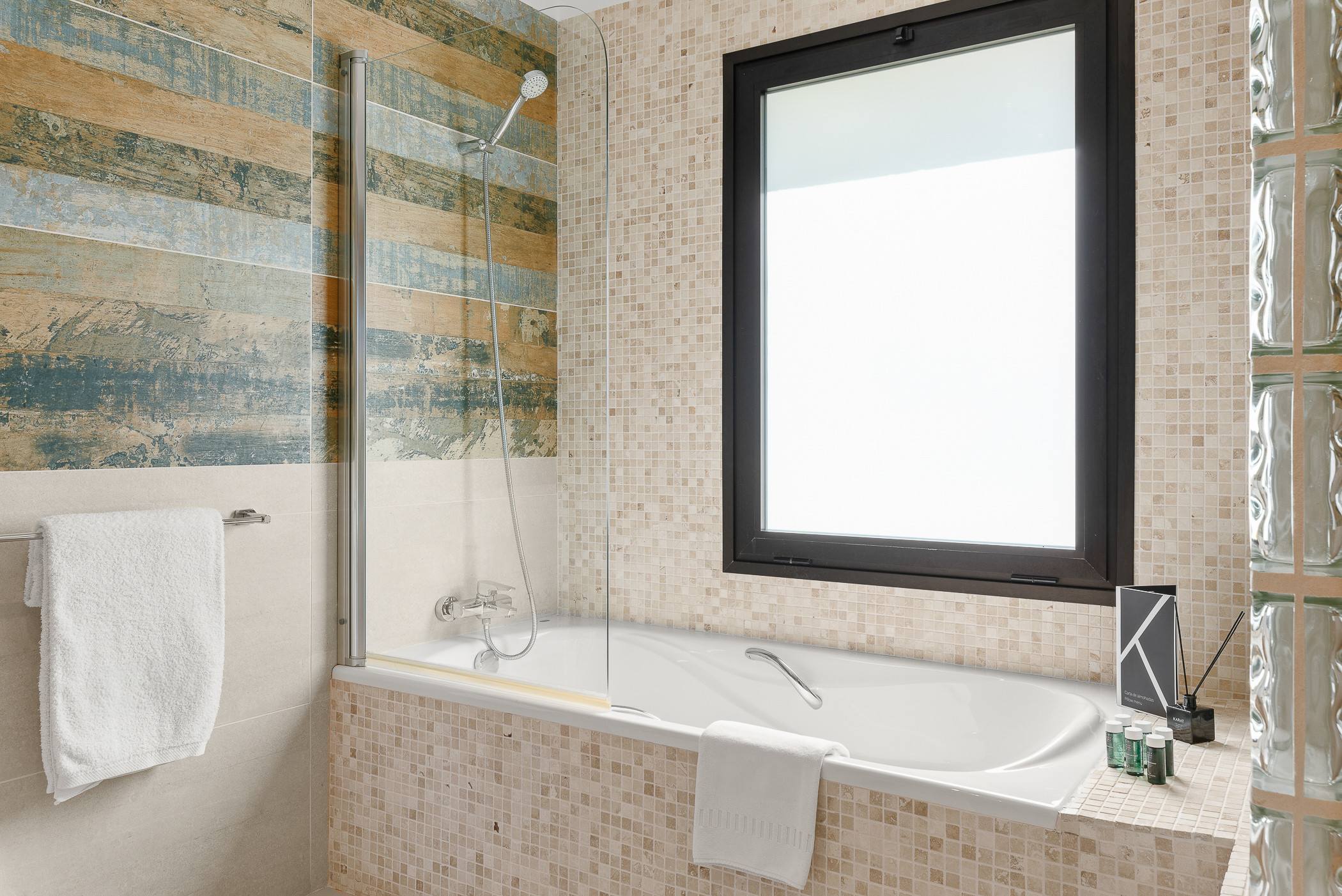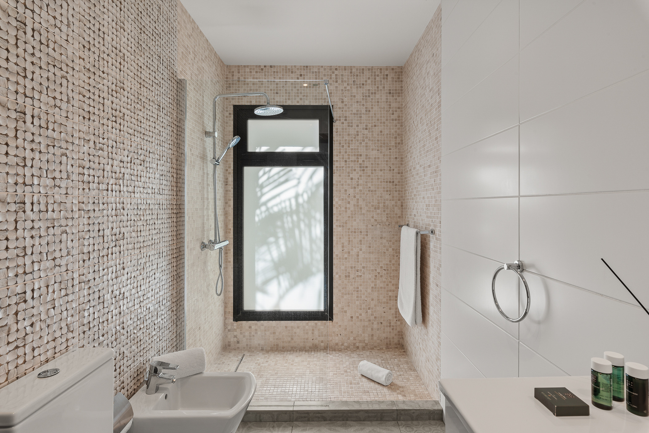 El exterior es simplemente impresionante: piscina climatizada con vistas abiertas al mar, solárium con tumbonas, zona chill out y comedor al aire libre para disfrutar desde desayunos tranquilos hasta cenas bajo las estrellas.