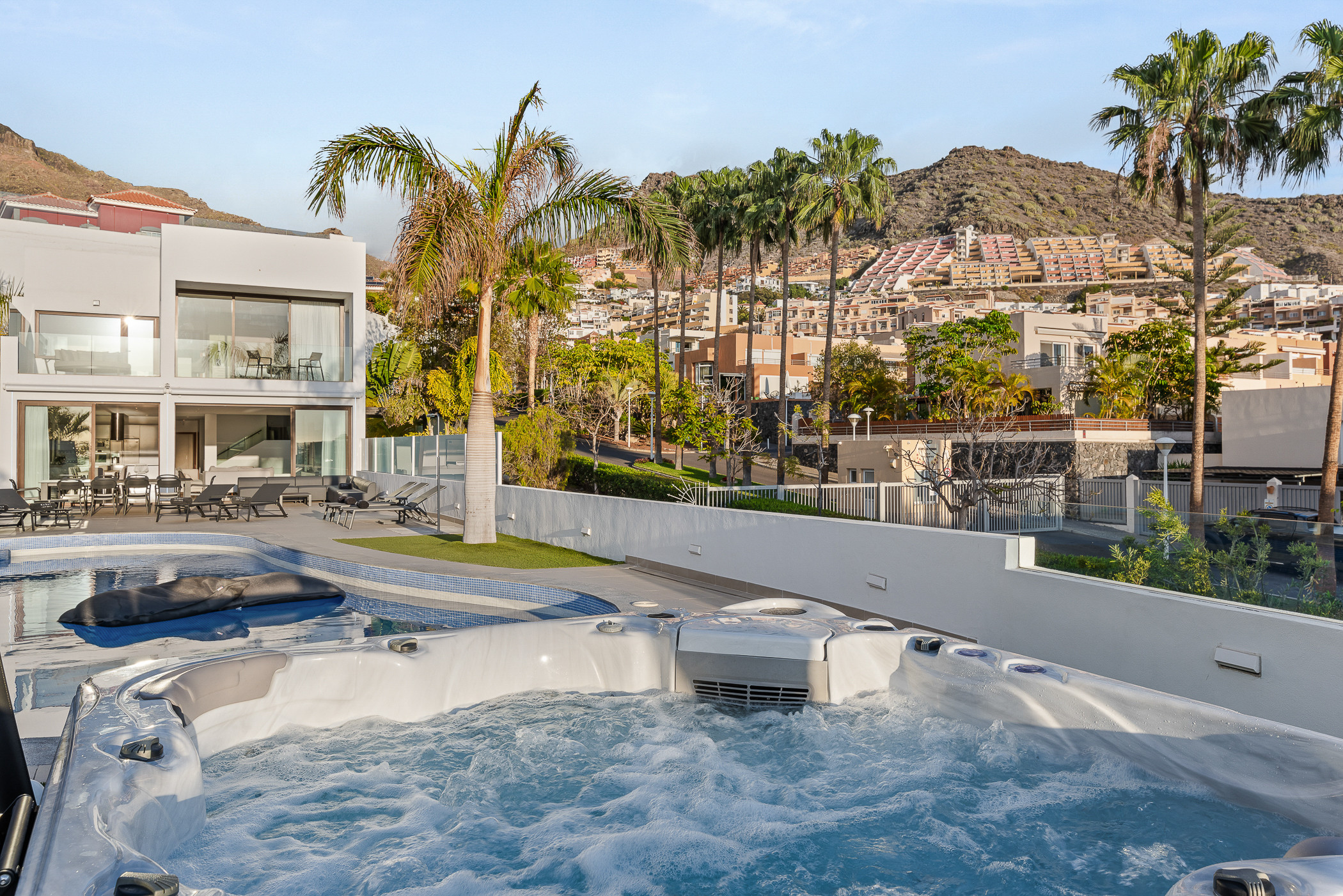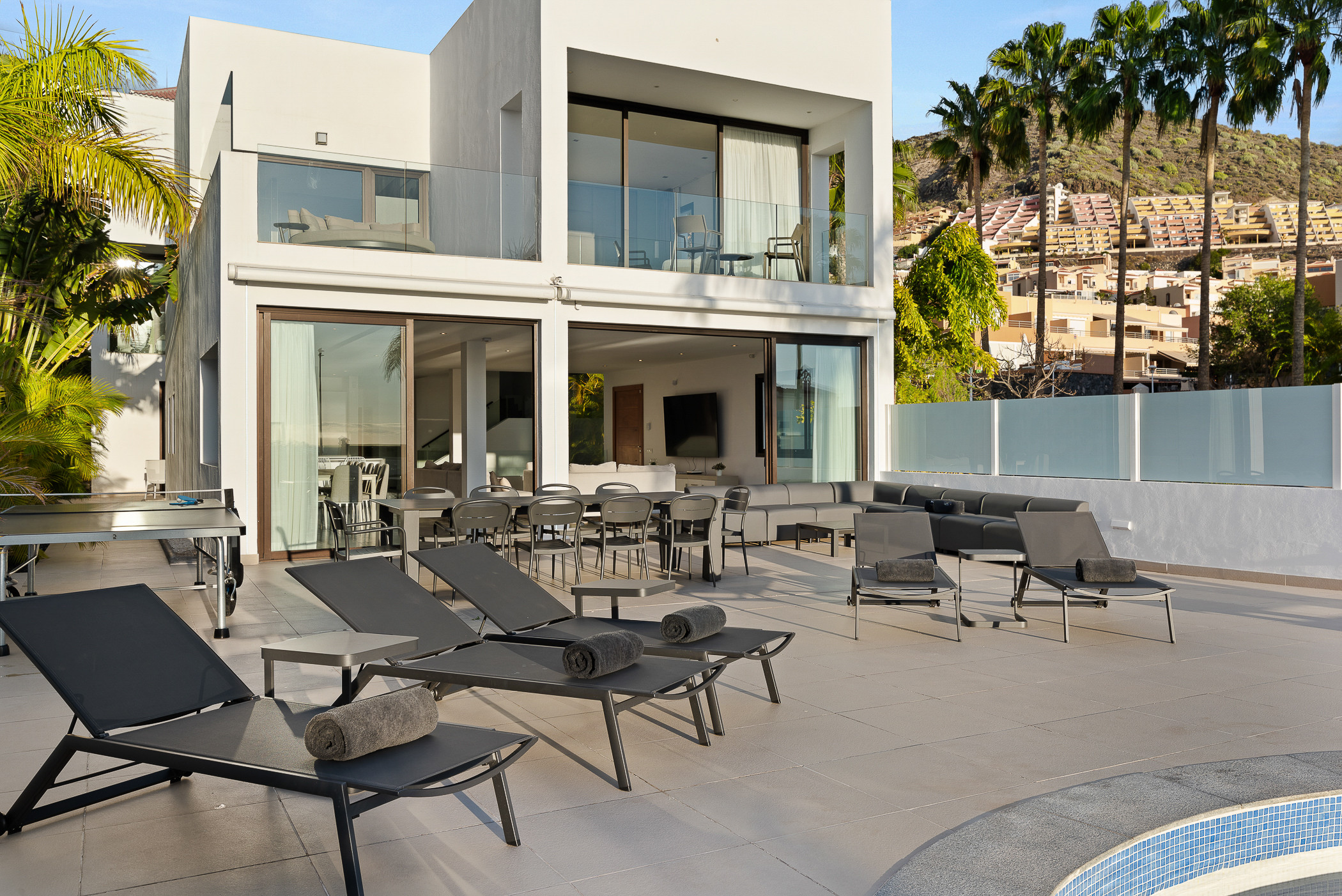 Esta espectacular villa en el sur de Tenerife le invita a disfrutar de una estancia exclusiva, rodeado de diseño, confort y unas vistas incomparables al océano Atlántico.