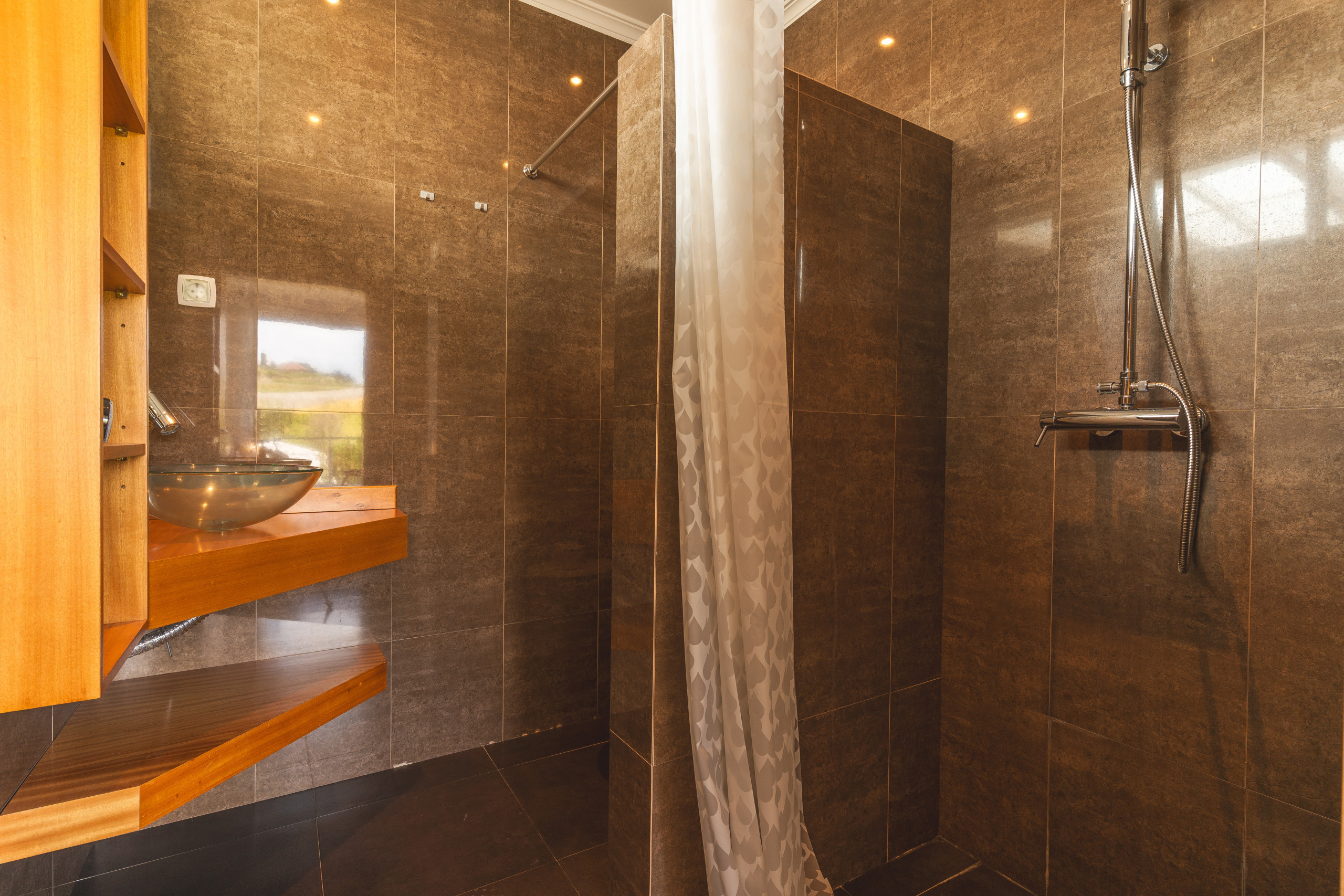 La villa cuenta con tres baños: uno en suite con ducha, uno completo con ducha y un aseo independiente. La cocina está completamente equipada con nevera, congelador, horno, placa, microondas, vajilla, cubiertos y todos los utensilios necesarios para cocinar. También hay lavavajillas, lavadora y secadora disponibles.