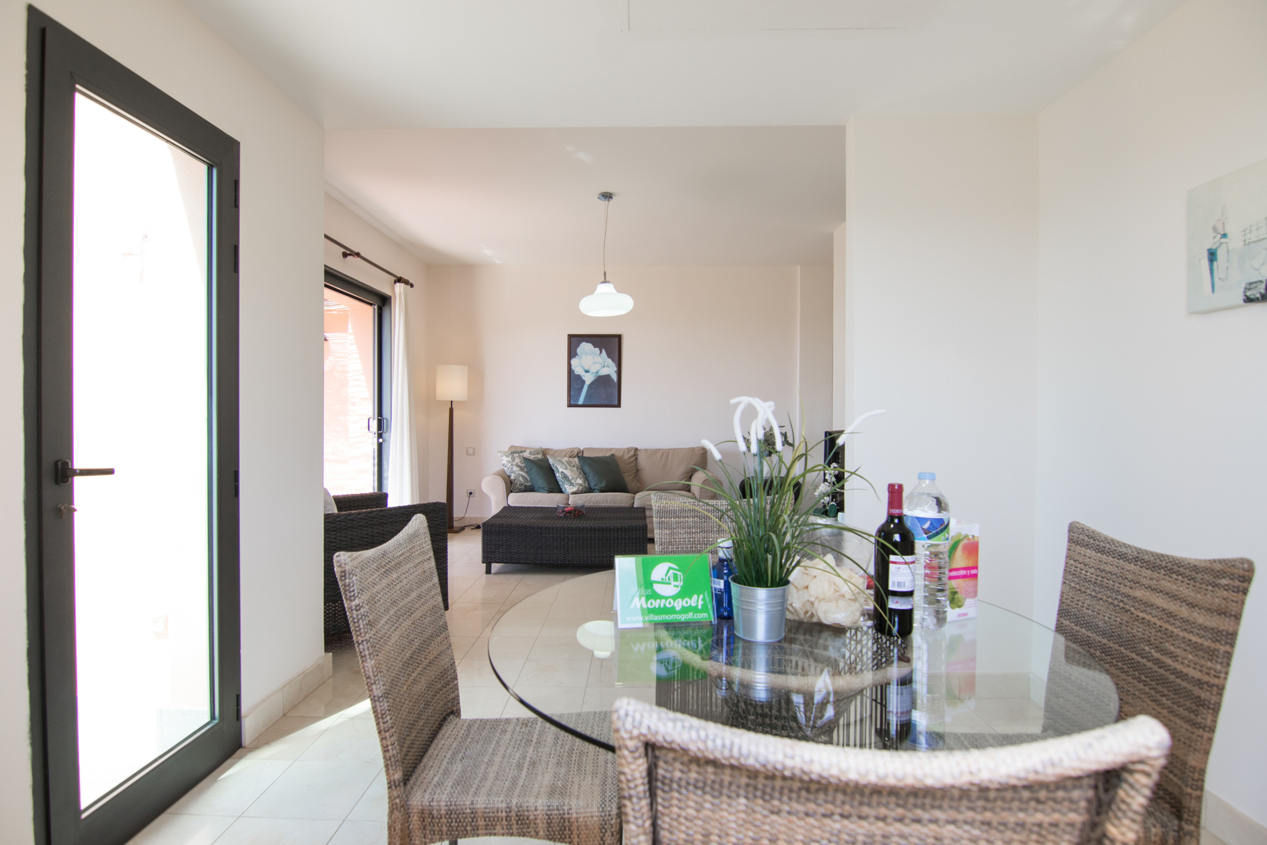 La villa cuenta con 2 dormitorios decorados con gusto, un acogedor salón con acceso a una terraza privada con mobiliario exterior, y una cocina independiente totalmente equipada.