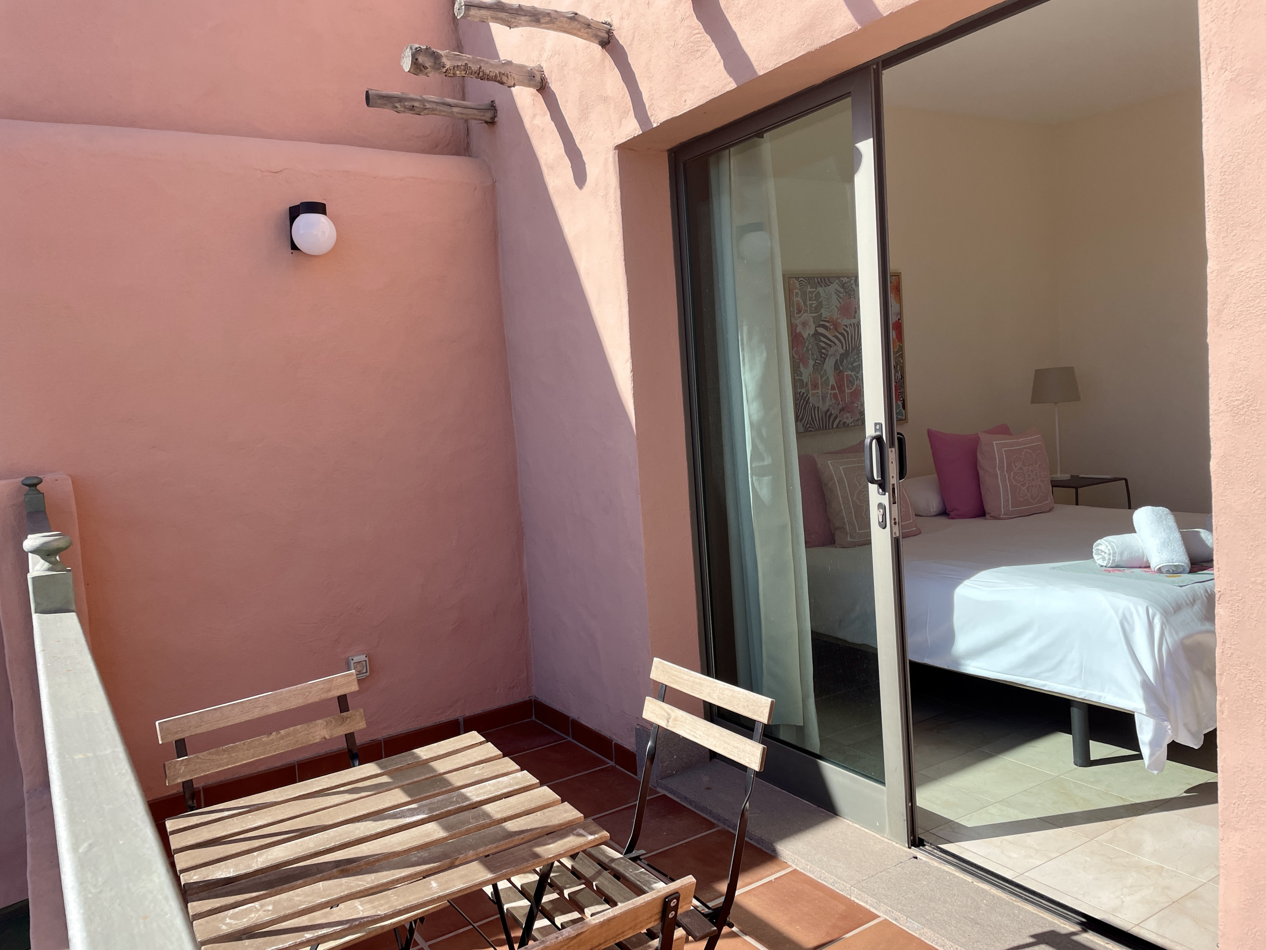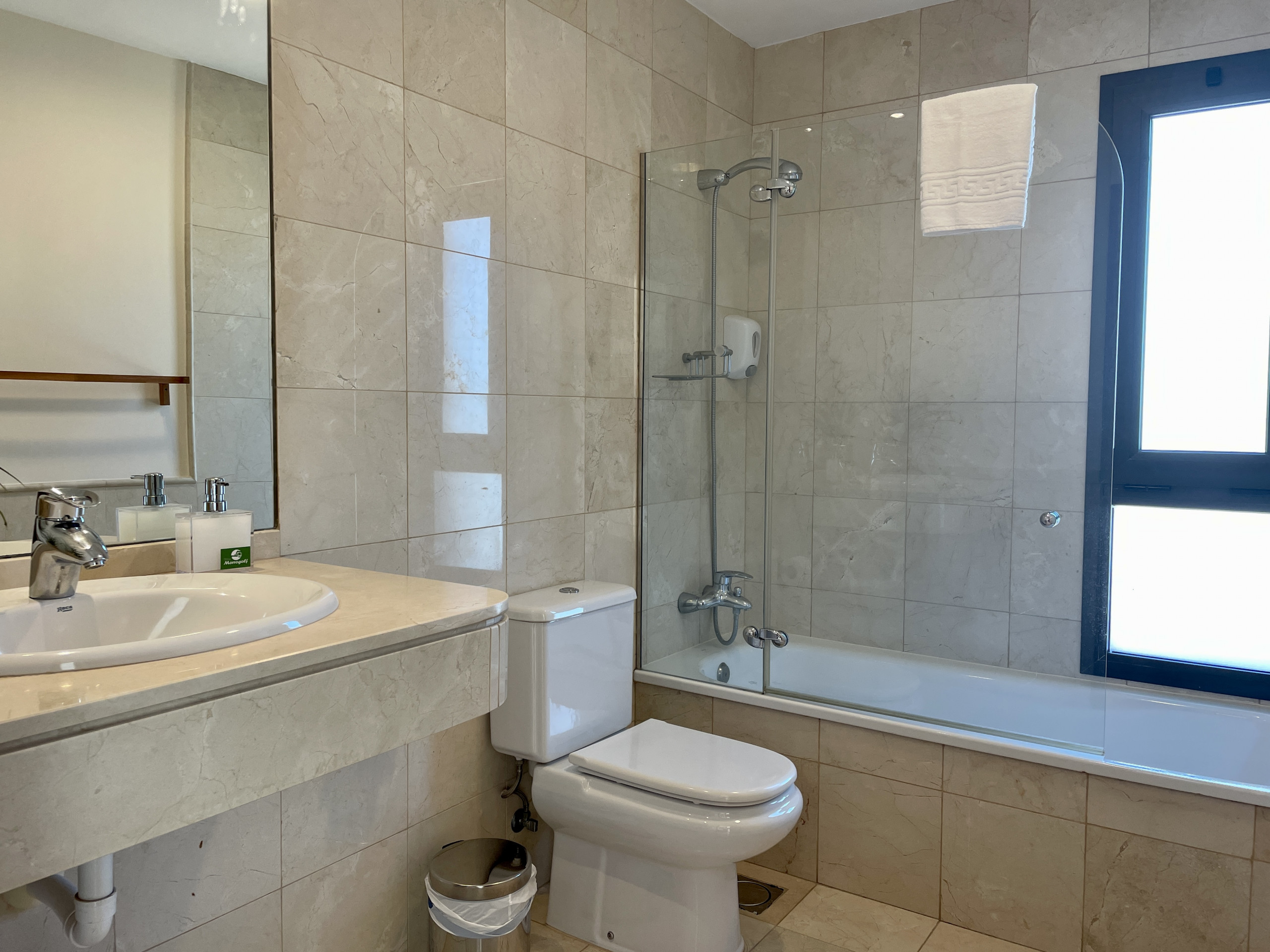 Wi-Fi, aire acondicionado, televisor, secador de pelo, piscina comunitaria con zona de tumbonas y parking exterior privado dentro del complejo.