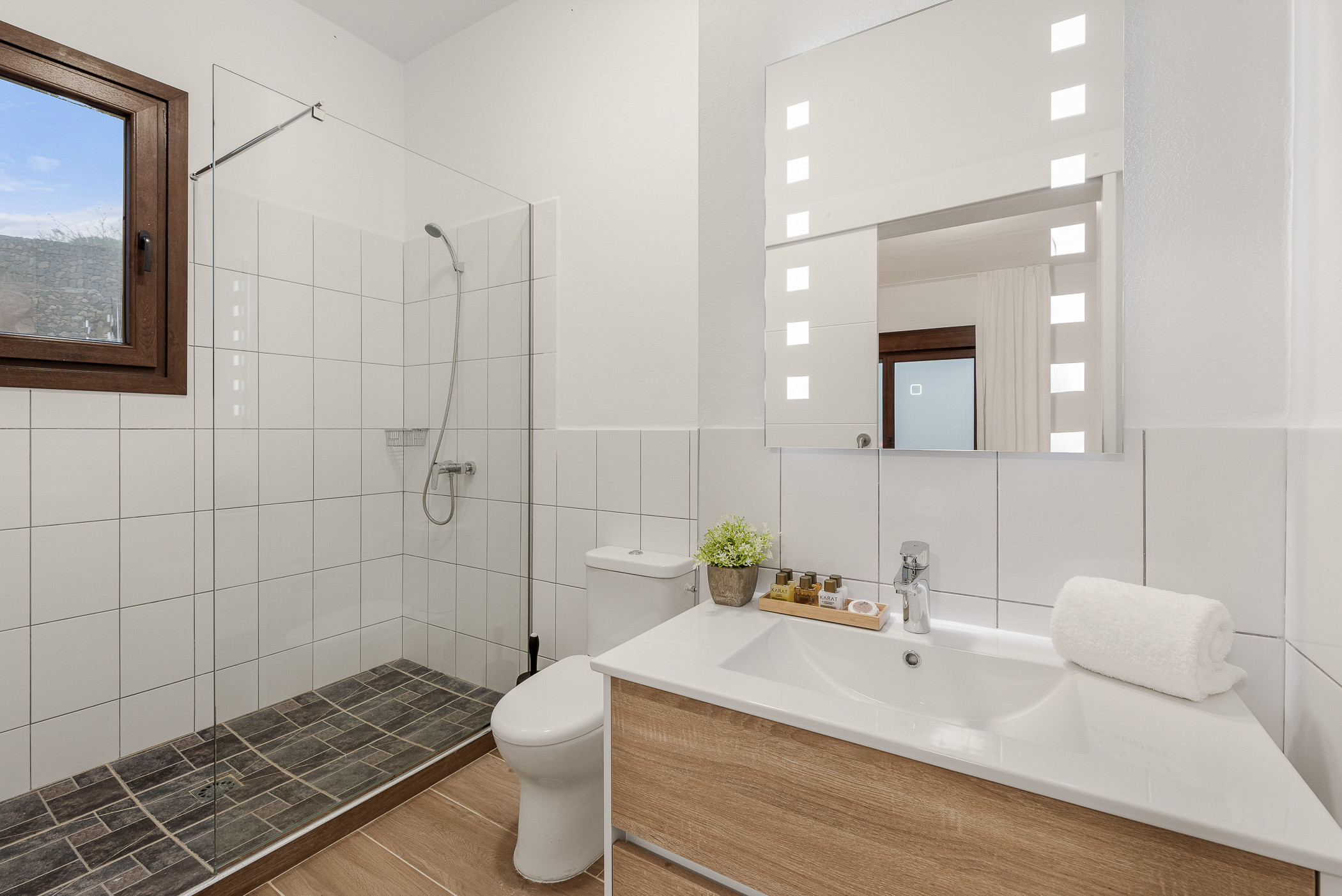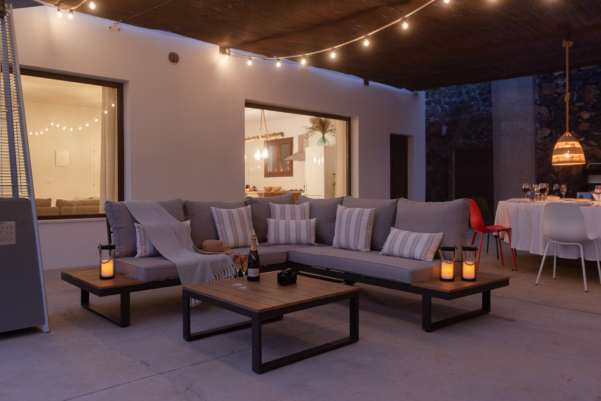 Cuenta con cuatro habitaciones dobles en suite, además de espacios exteriores pensados para el entretenimiento: piscina climatizada, zona chill out, barbacoa, ping-pong, cancha de petanca y fútbol. Aquí, cada día comienza con un café al aire libre y termina contemplando las estrellas.