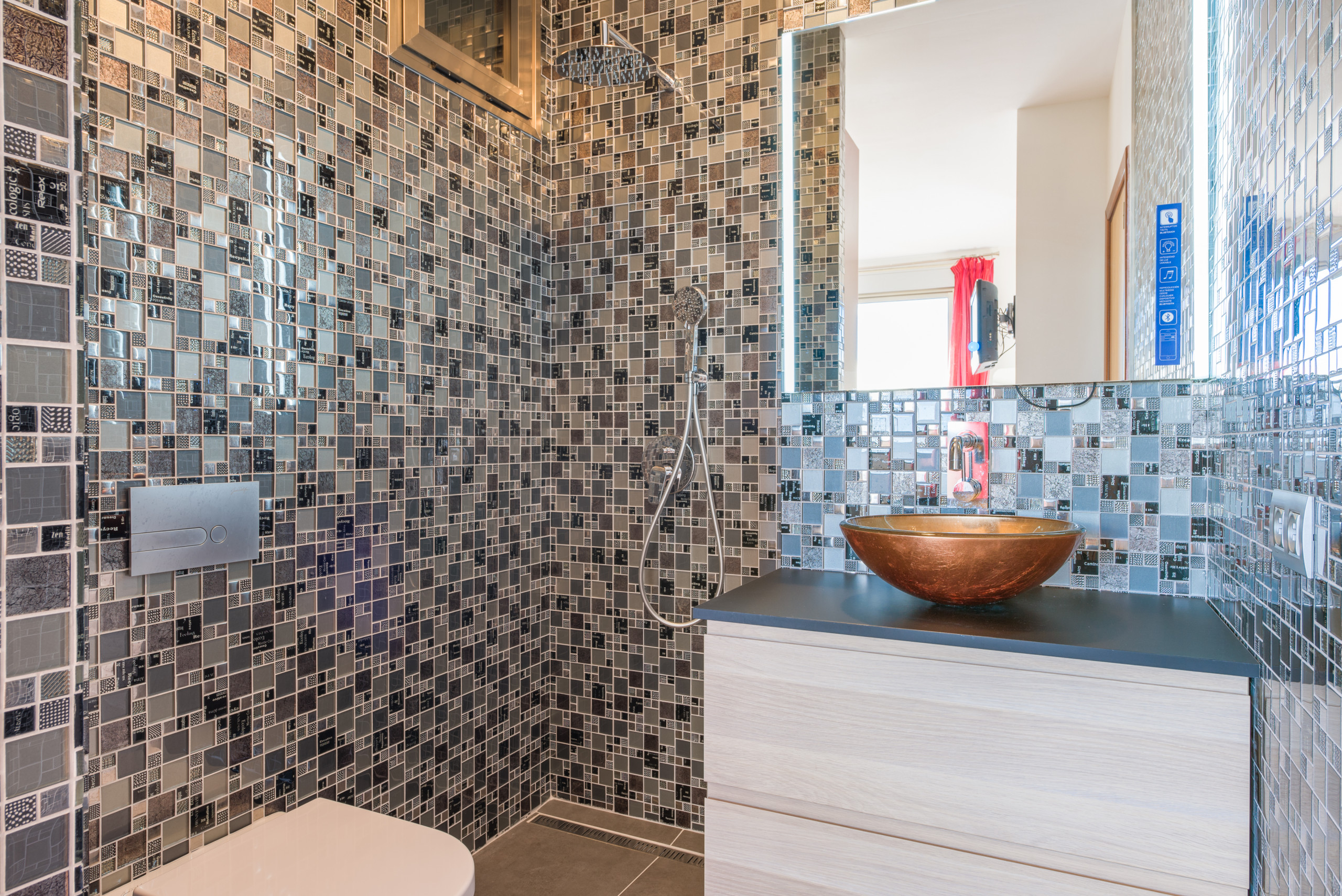 3 baños: El baño en suite del dormitorio principal dispone de dos lavabos, plato de ducha. El baño de la planta alta dispone de un lavado y una ducha. En la planta inferior tenemos dos baños, uno de ellos se encuentra en el gimnasio y dispone de una ducha gigante, un lavabo e inodoro. La habitación de la planta baja dispone de un baño adicional dentro de la habitación.